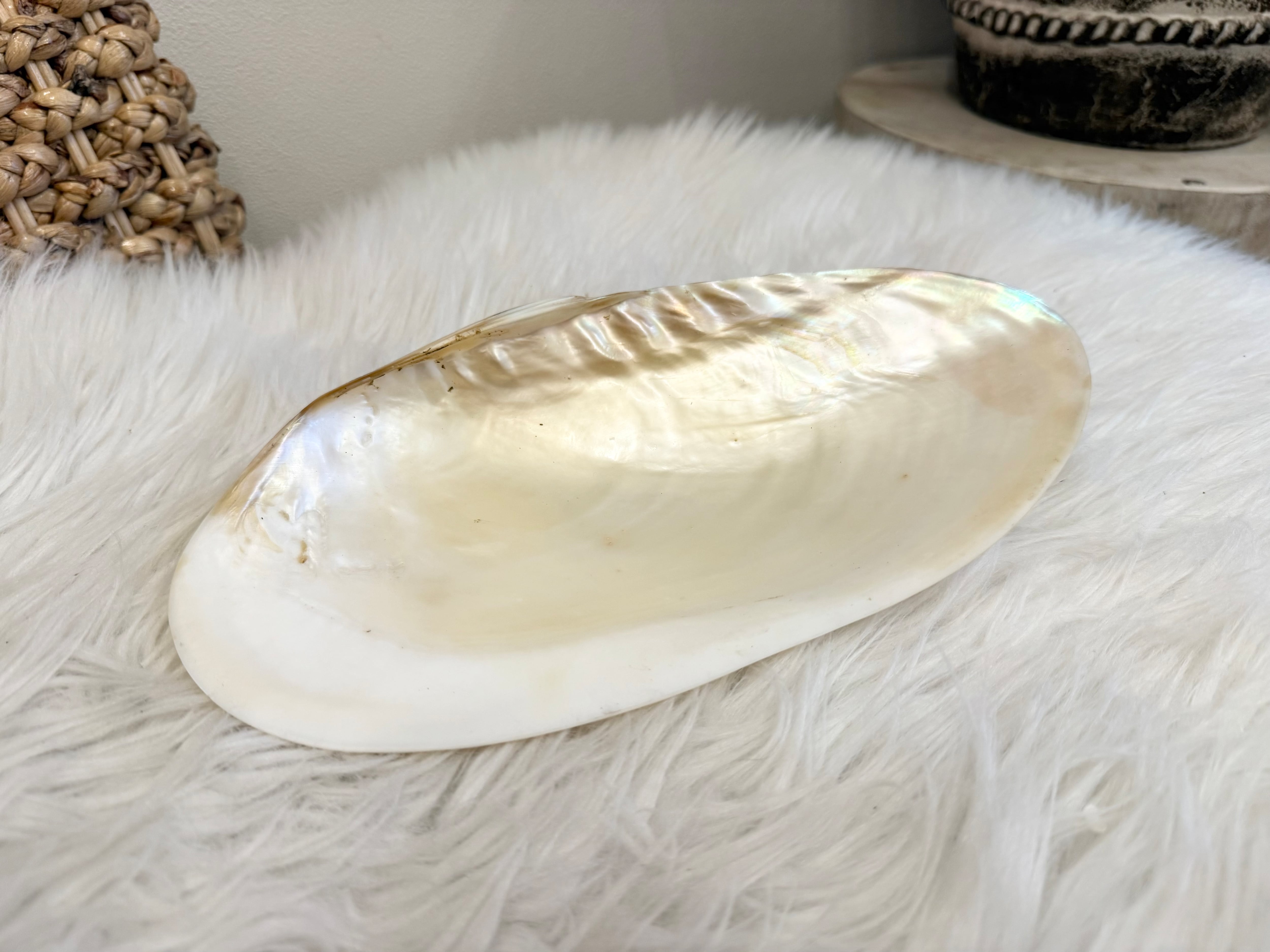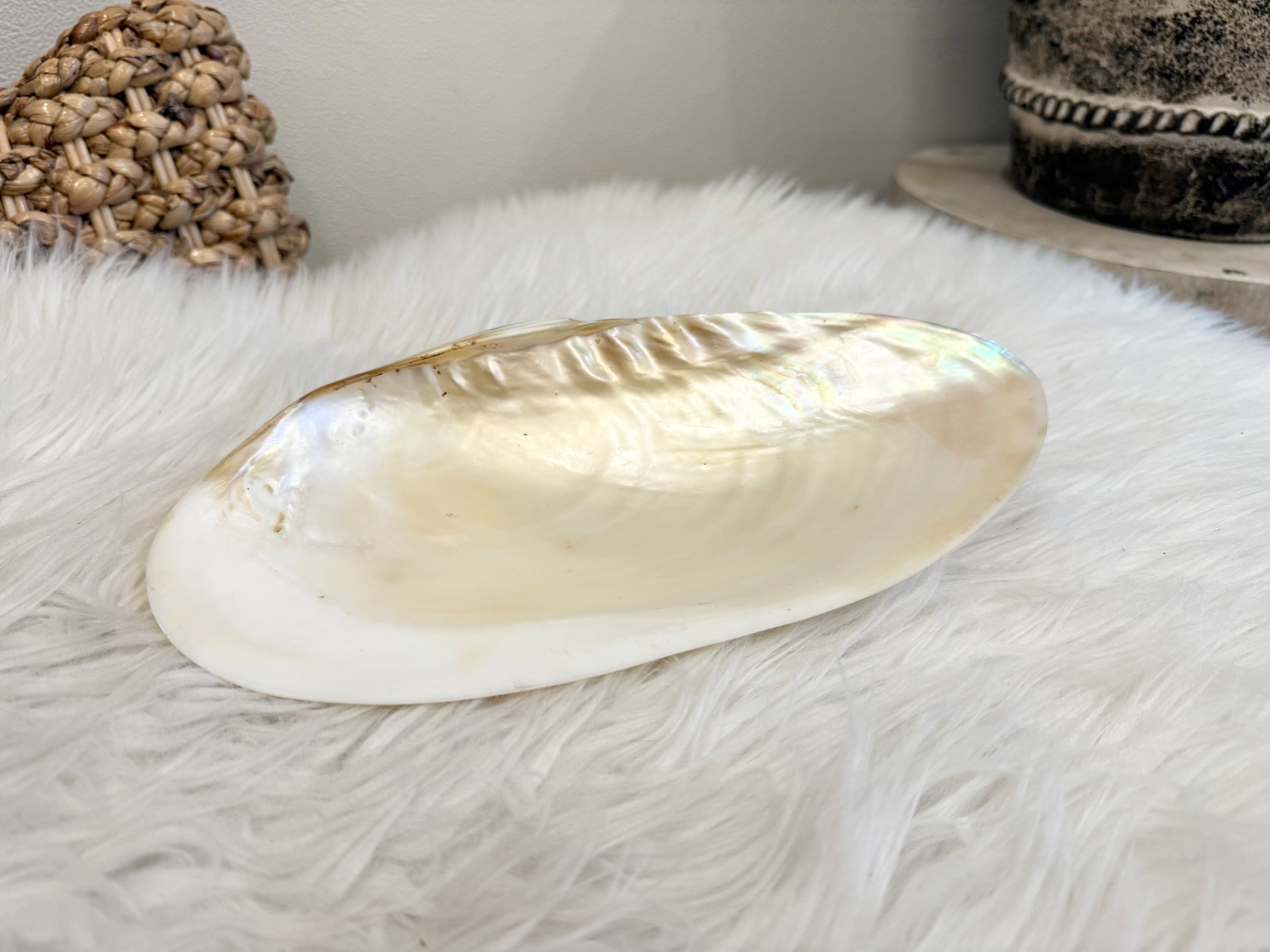 お部屋をより魅力的に演出する、貝殻のトレーです。自然の美しさを感じさせるデザインは、シンプルながらも存在感があり、どんなインテリアにも溶け込みます。