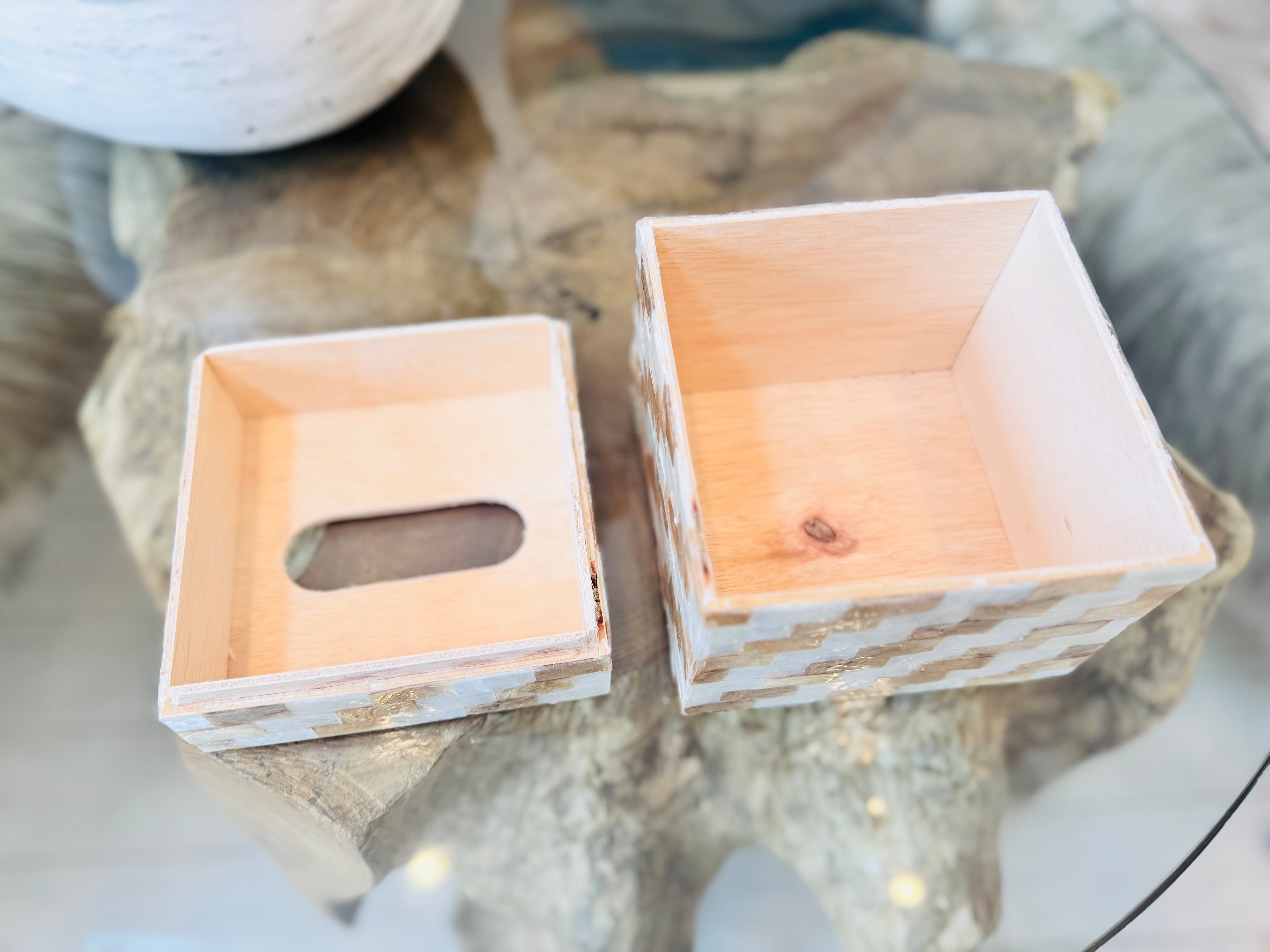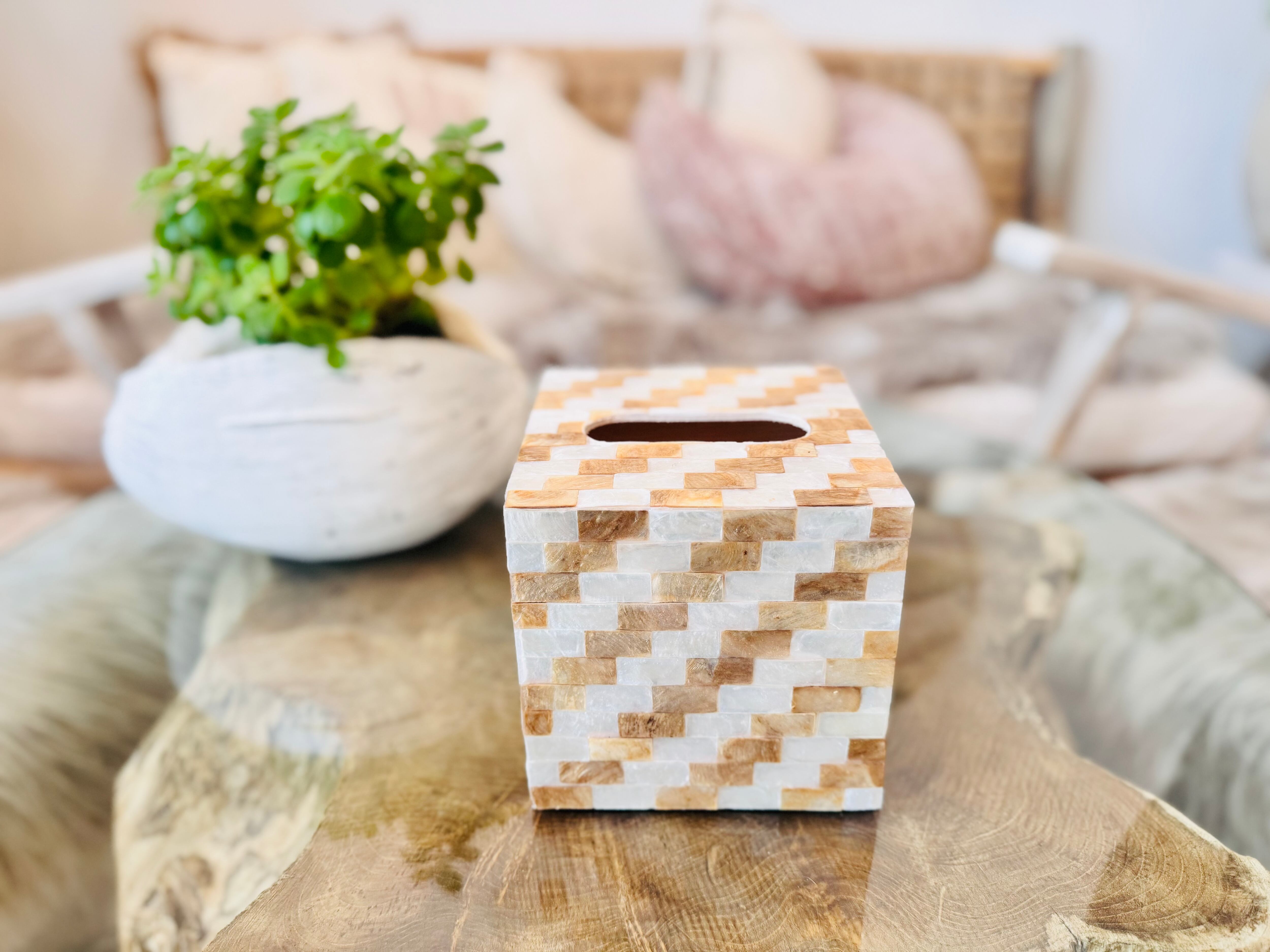 優雅な空間を演出する、カピス貝のティッシュボックス