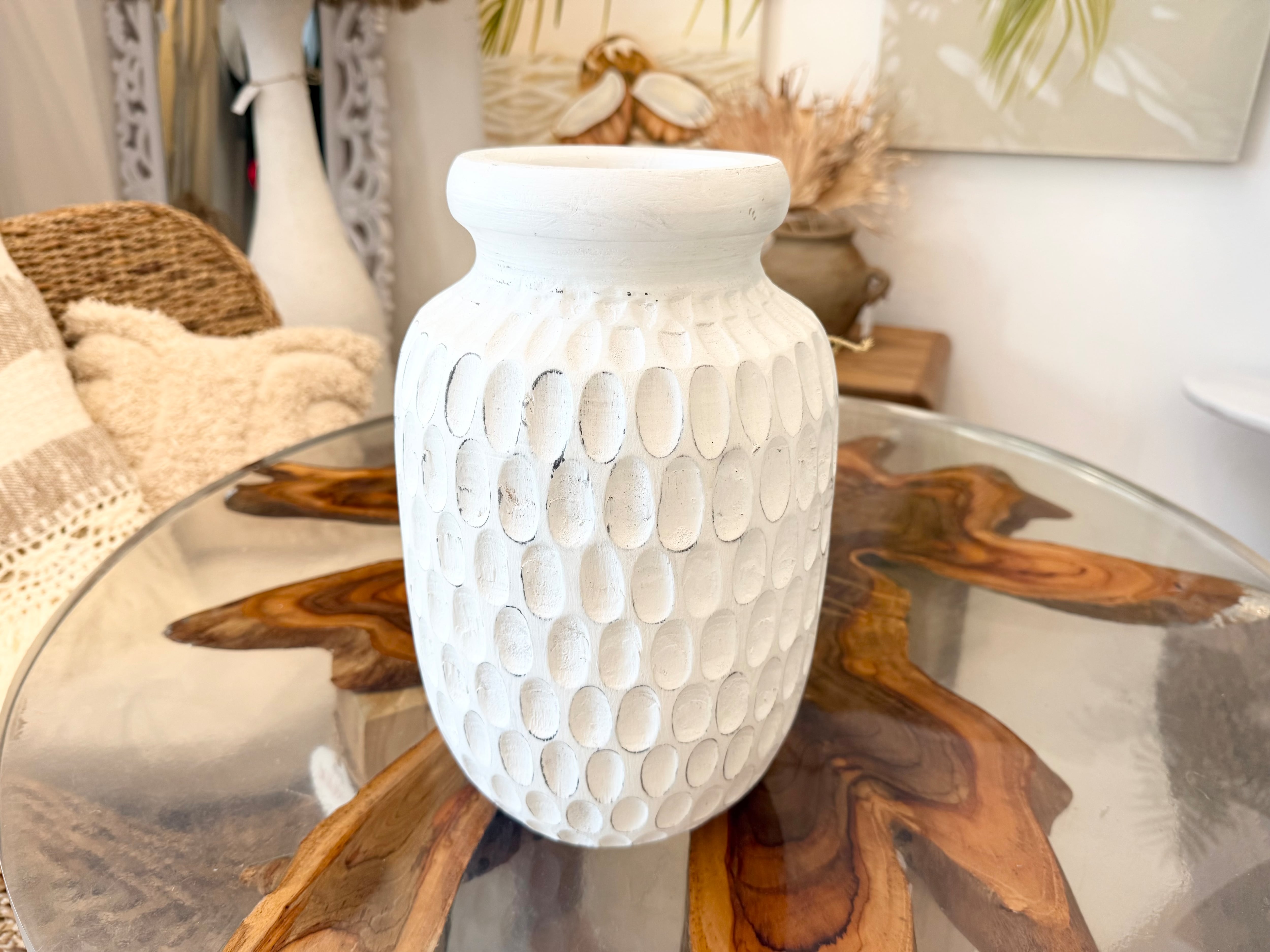 このアンティークホワイトの木製フラワーポットは、独特のシャビー感があり、どんなインテリアにもぴったりとマッチする魅力的なアイテムです。植物を引き立てるだけでなく、そのデザインが空間に洗練された雰囲気をもたらします!