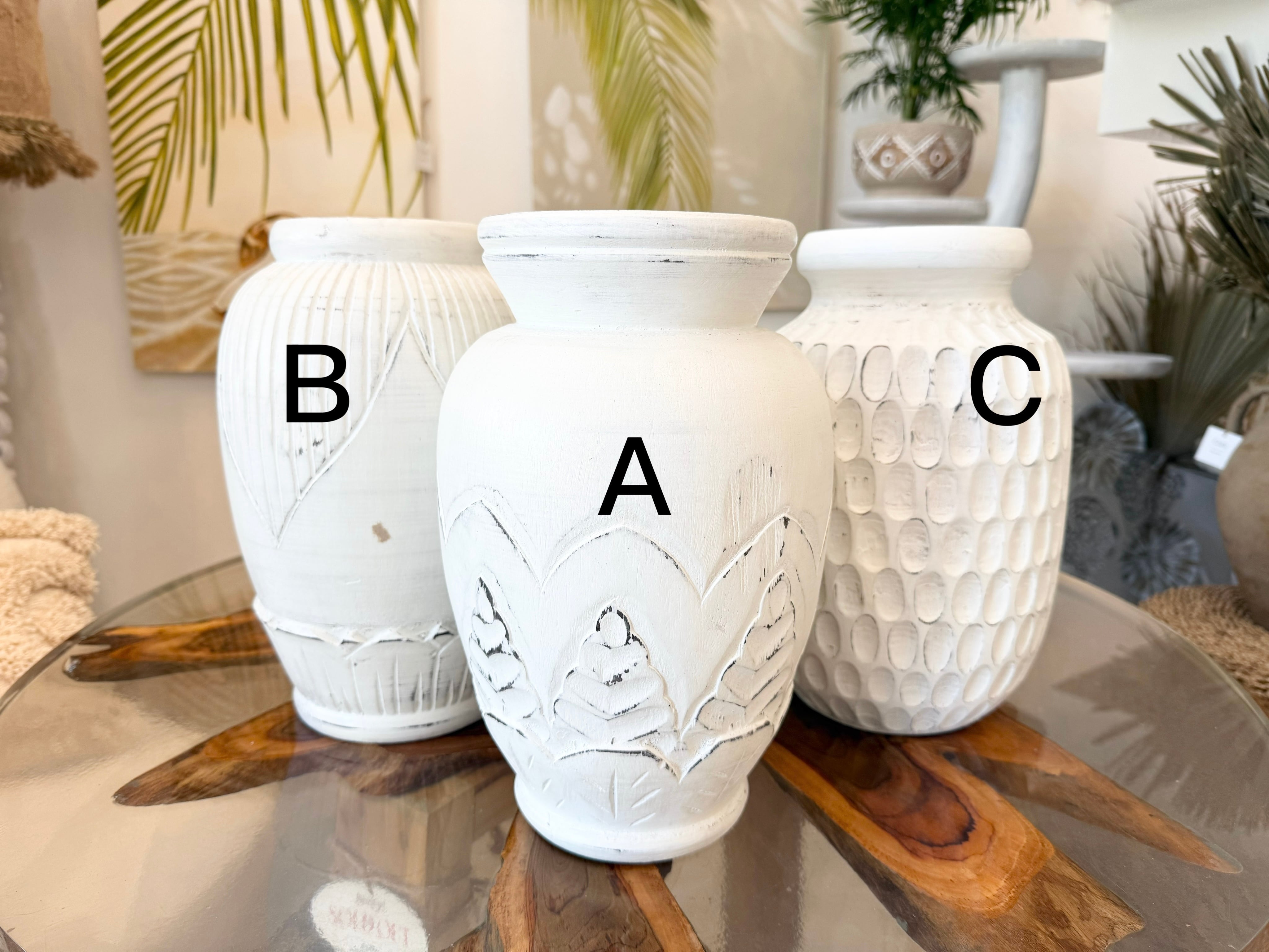 wood flower pot antique White