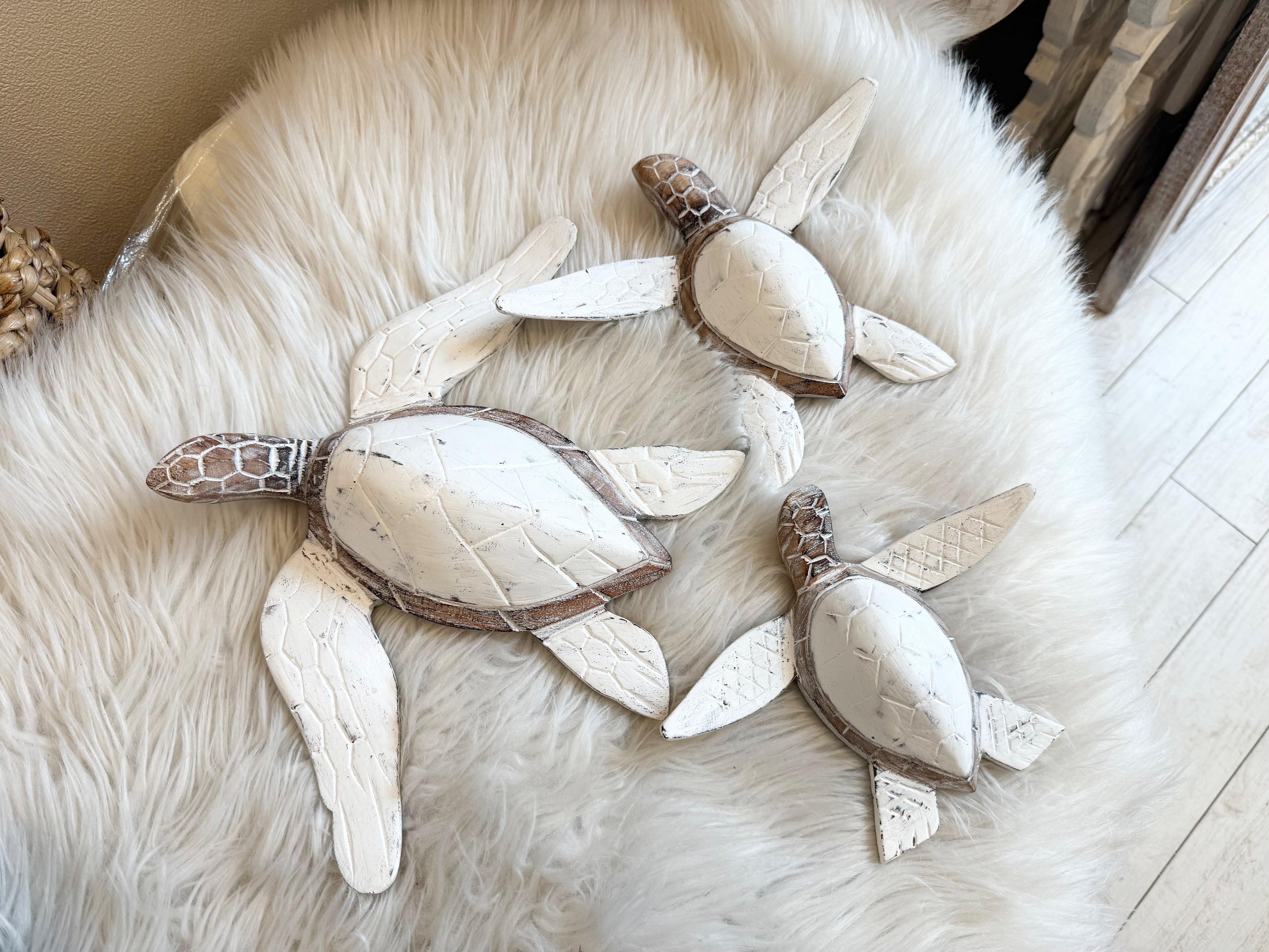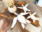 この木製の亀が泳いでいるようなデザインの壁掛けハンギングは、天然素材を使用しており、独特の温かみとナチュラルな雰囲気をお部屋にもたらします。どんなインテリアスタイルにもフィットする魅力的なアイテムです!
