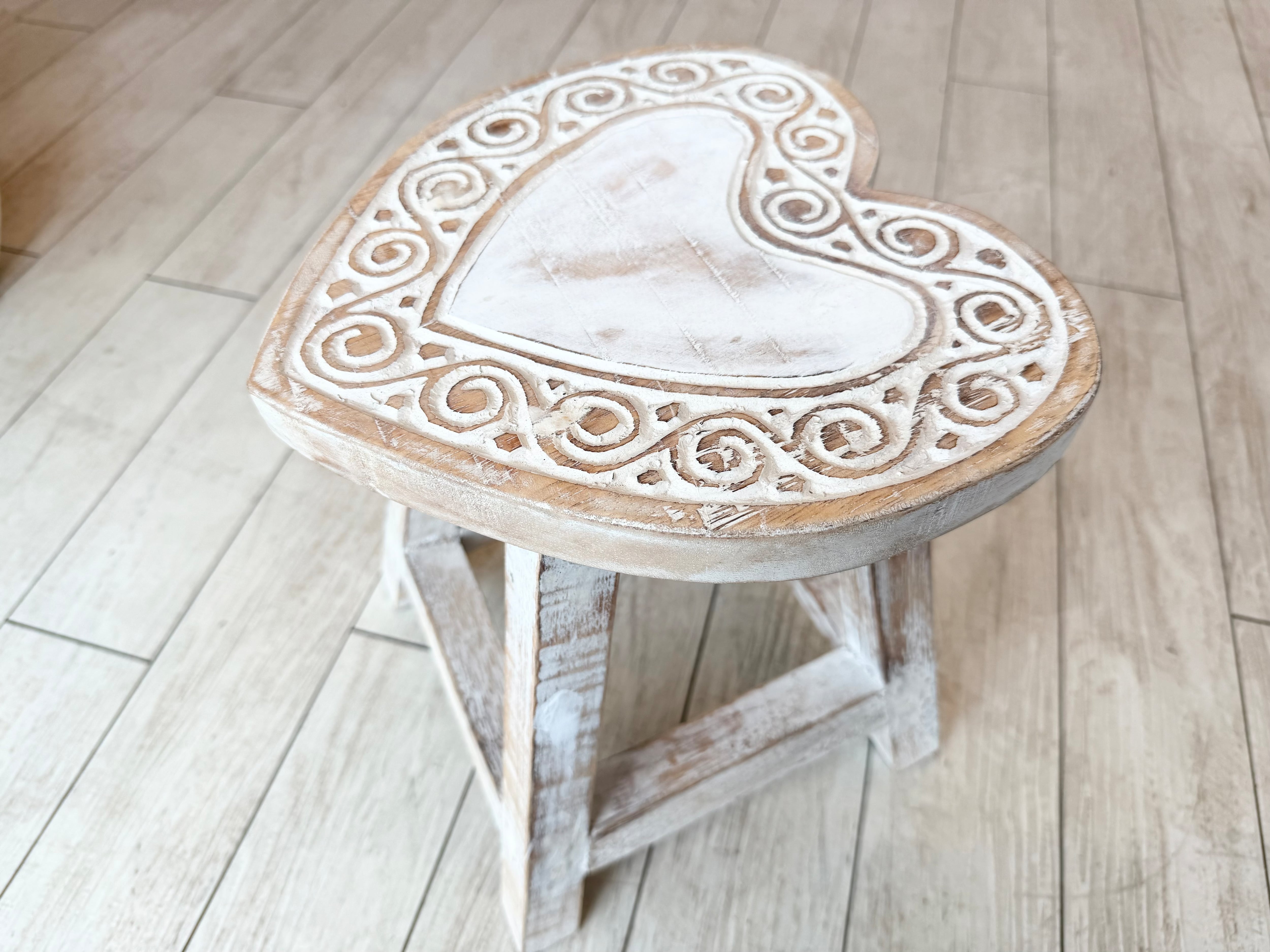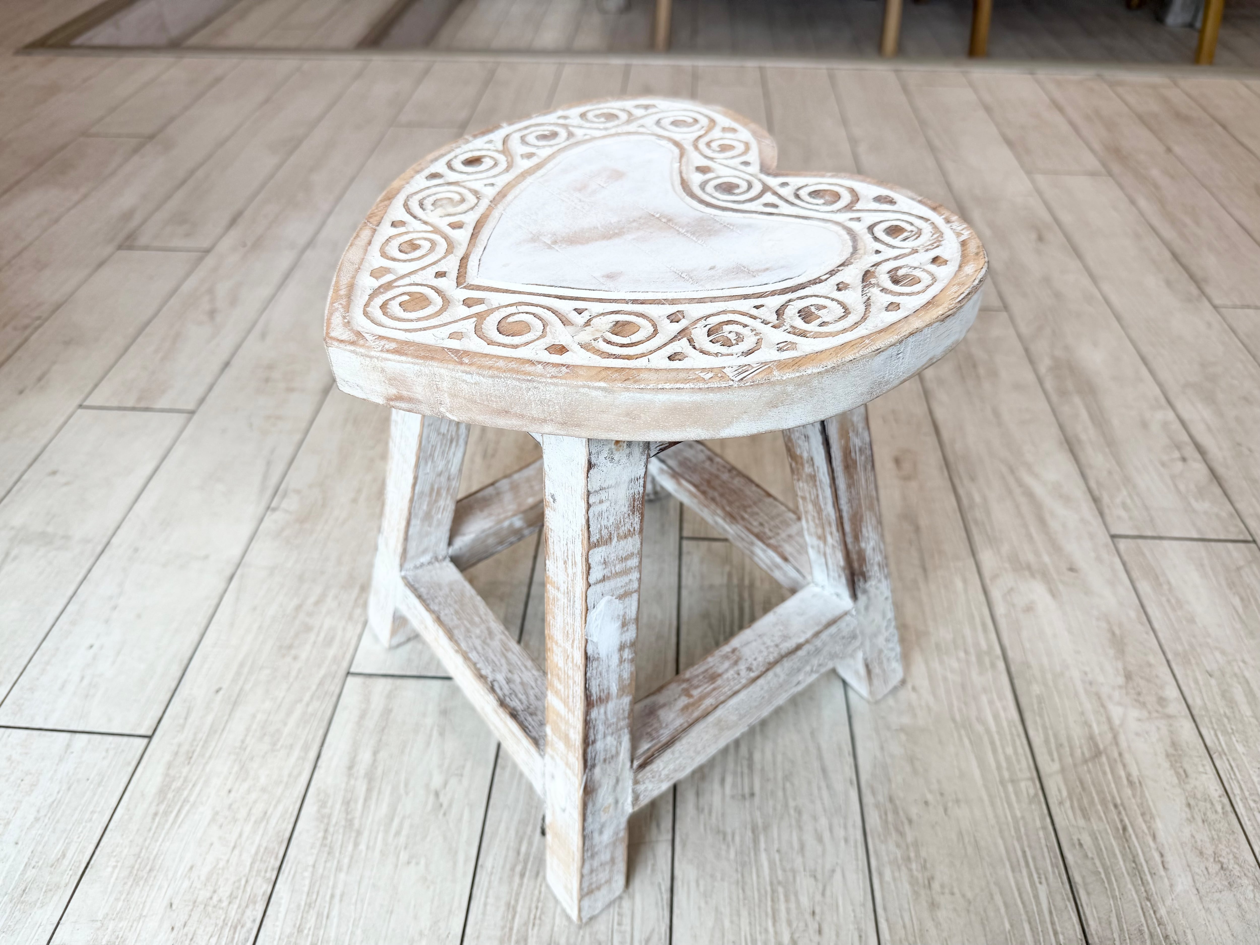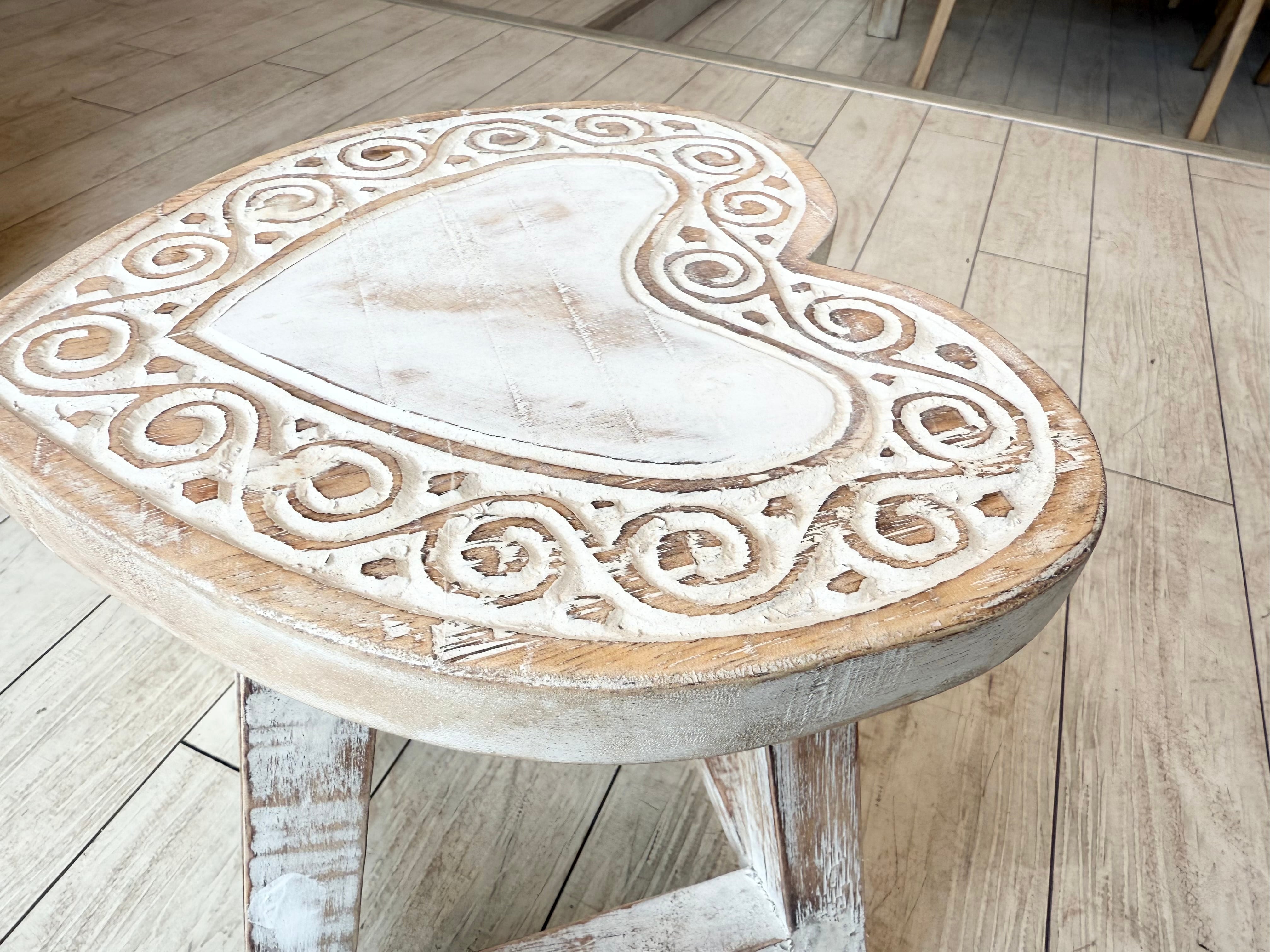 この木製のハートの形をした椅子は、心を和ませる愛らしいデザインが特徴です。小さなサイズなので、子供用の椅子や、台としてもお使いいただけます。お部屋のアクセントとして、どんなインテリアにも素敵にマッチします!