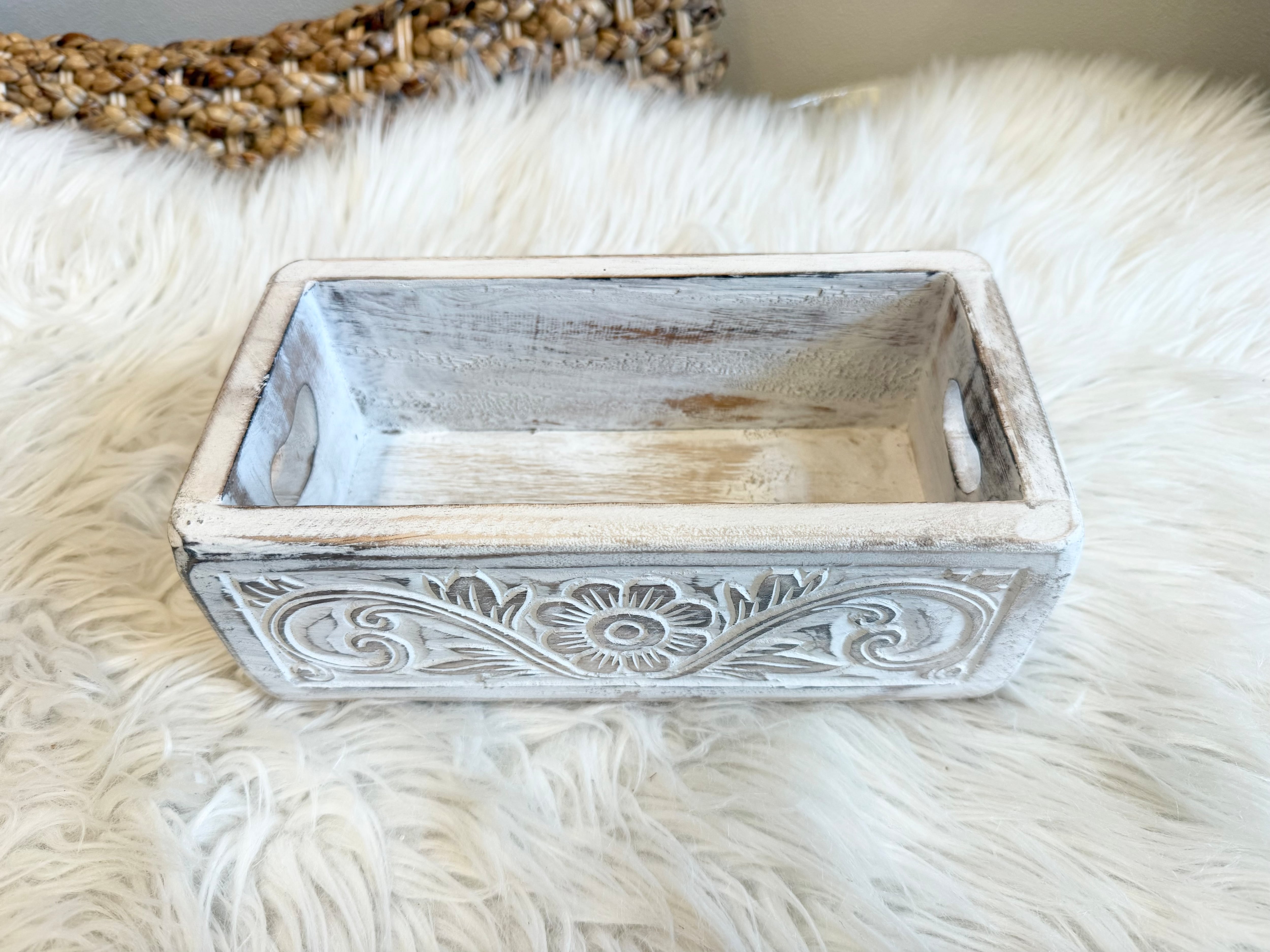 この木製のカービングが施されたボックスは、ハートのデザインの持ち手がとても可愛らしく、使うたびに笑顔になります。Lサイズなので、収納力も抜群で、様々なアイテムを整理整頓するのに最適です。お部屋のどこに置いても、ナチュラルでおしゃれな雰囲気を演出します!