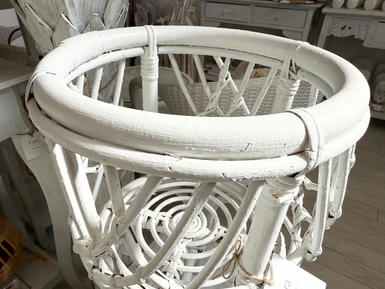 可愛らしいホワイトカラーの竹製プランターカバー