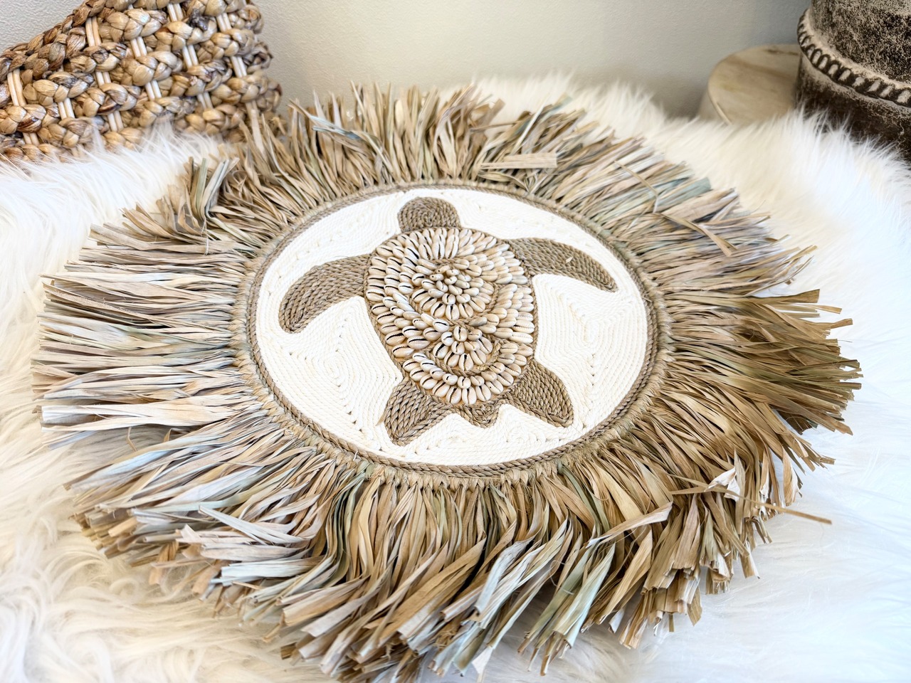 raffia¯amé&shell turtle design hanging