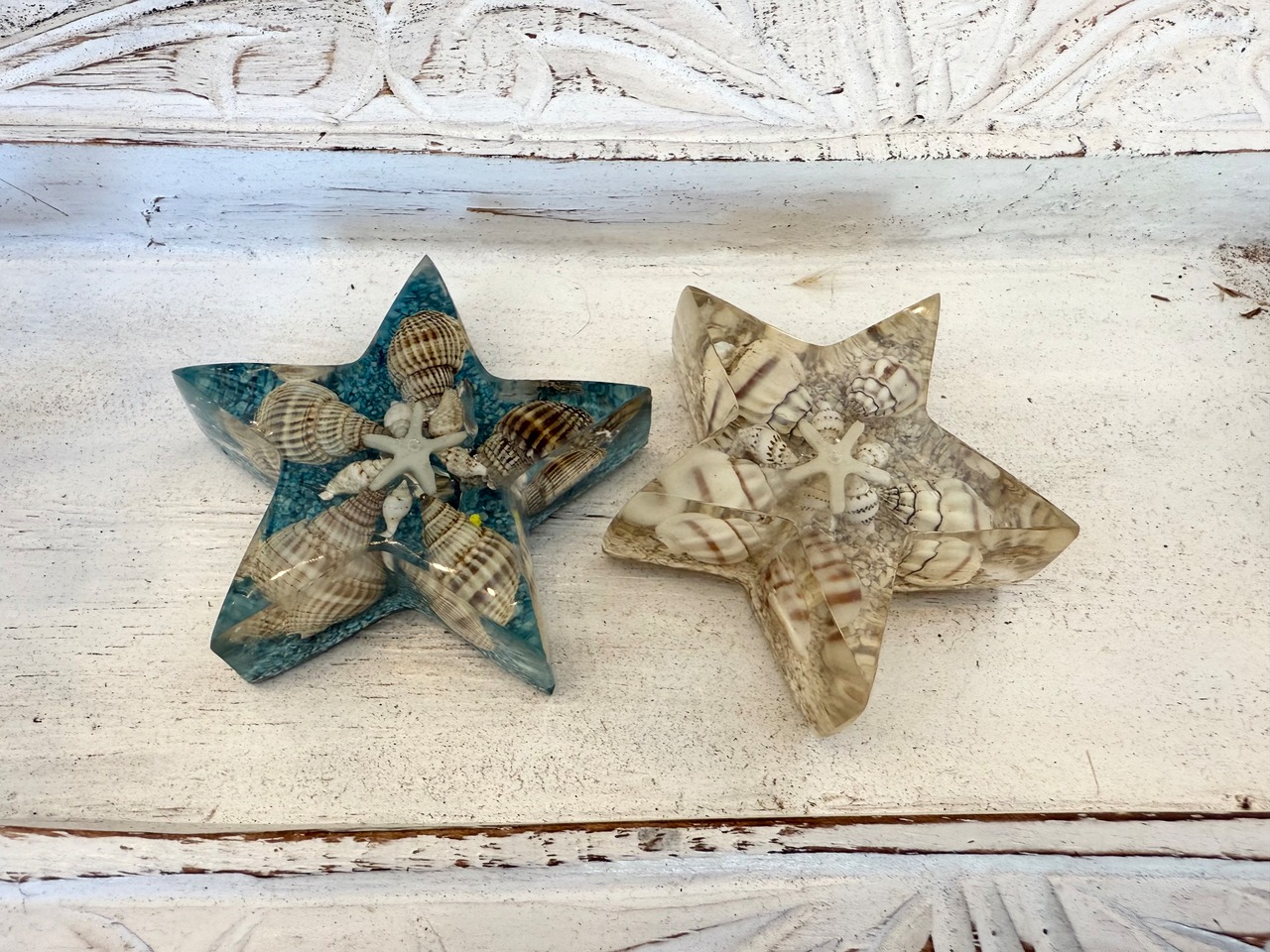 貝が埋め込まれた美しい星型のレジンオブジェ