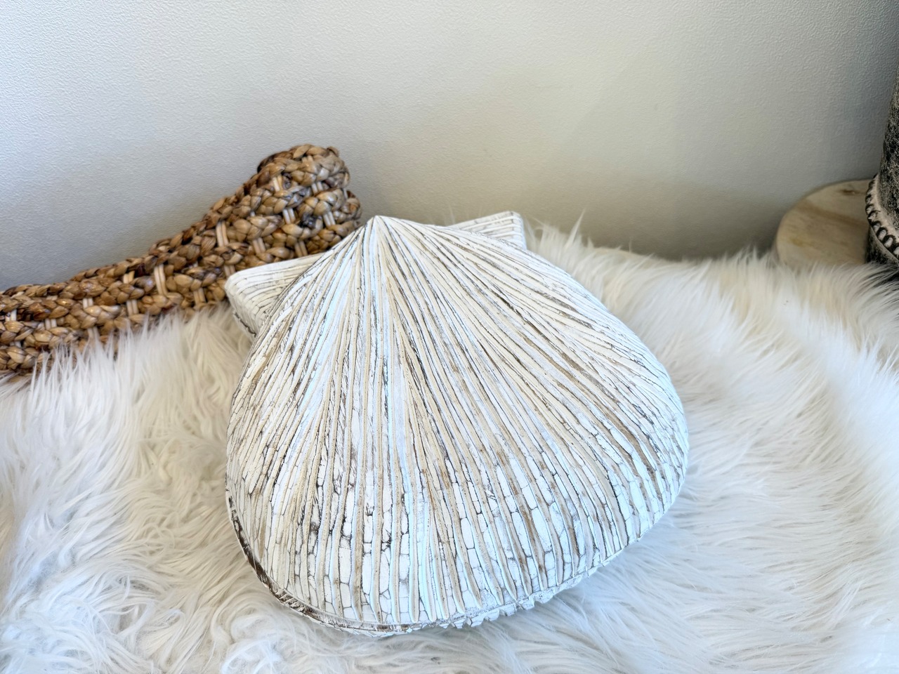 大きな木製のシェル型ボックスでおしゃれに飾る