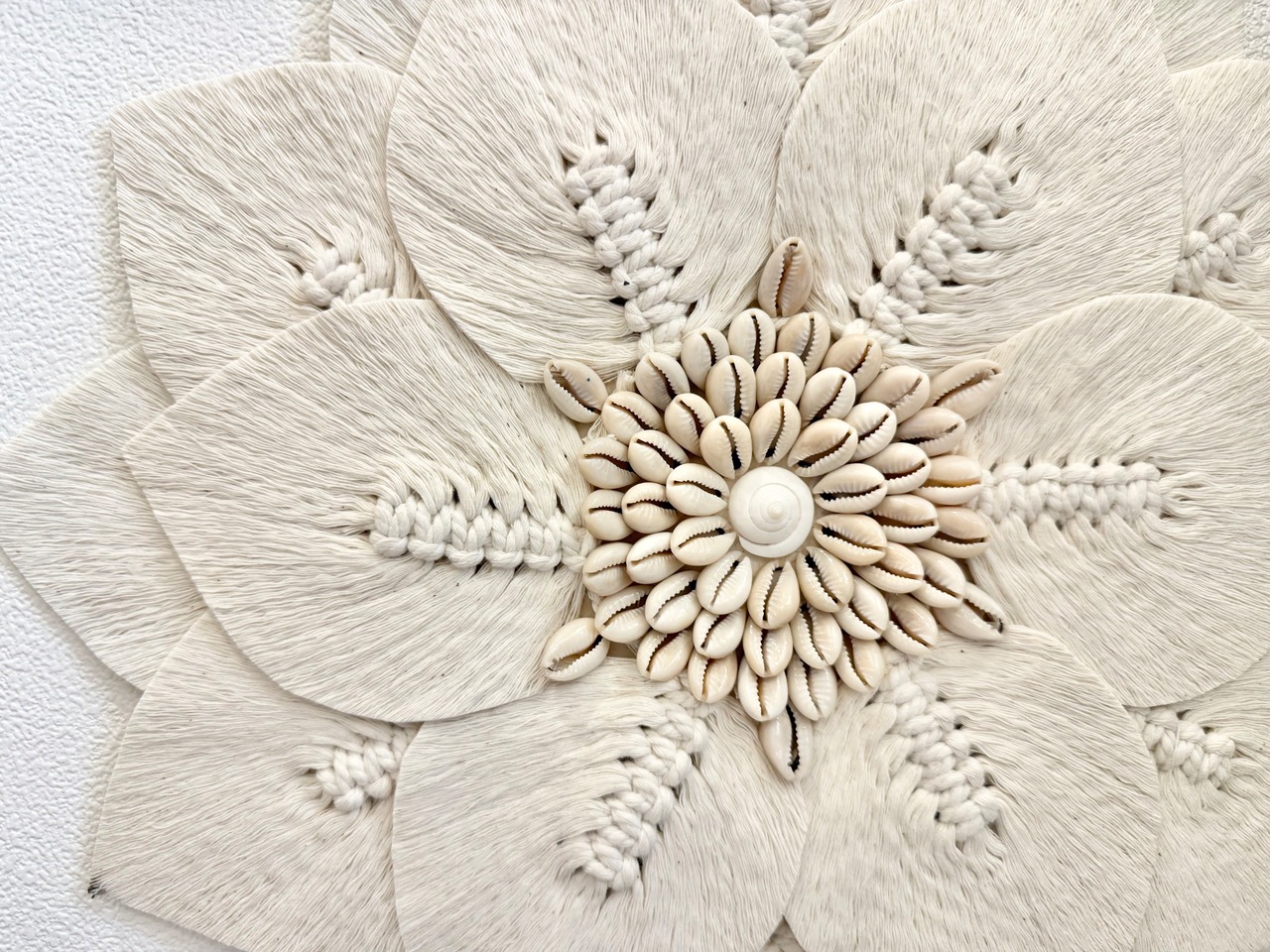 このmacramé & shell styleは、マクラメで花びらを作り、shellを組み合わせた美しいフラワーデザインのハンギングです。アートのようなディテールと自然素材の優雅な調和が、どんな空間にも特別な雰囲気を添えます。柔らかなラインと貝殻の輝きが魅力的で、おしゃれなインテリアのアクセントやギフトにも最適なアイテムです!