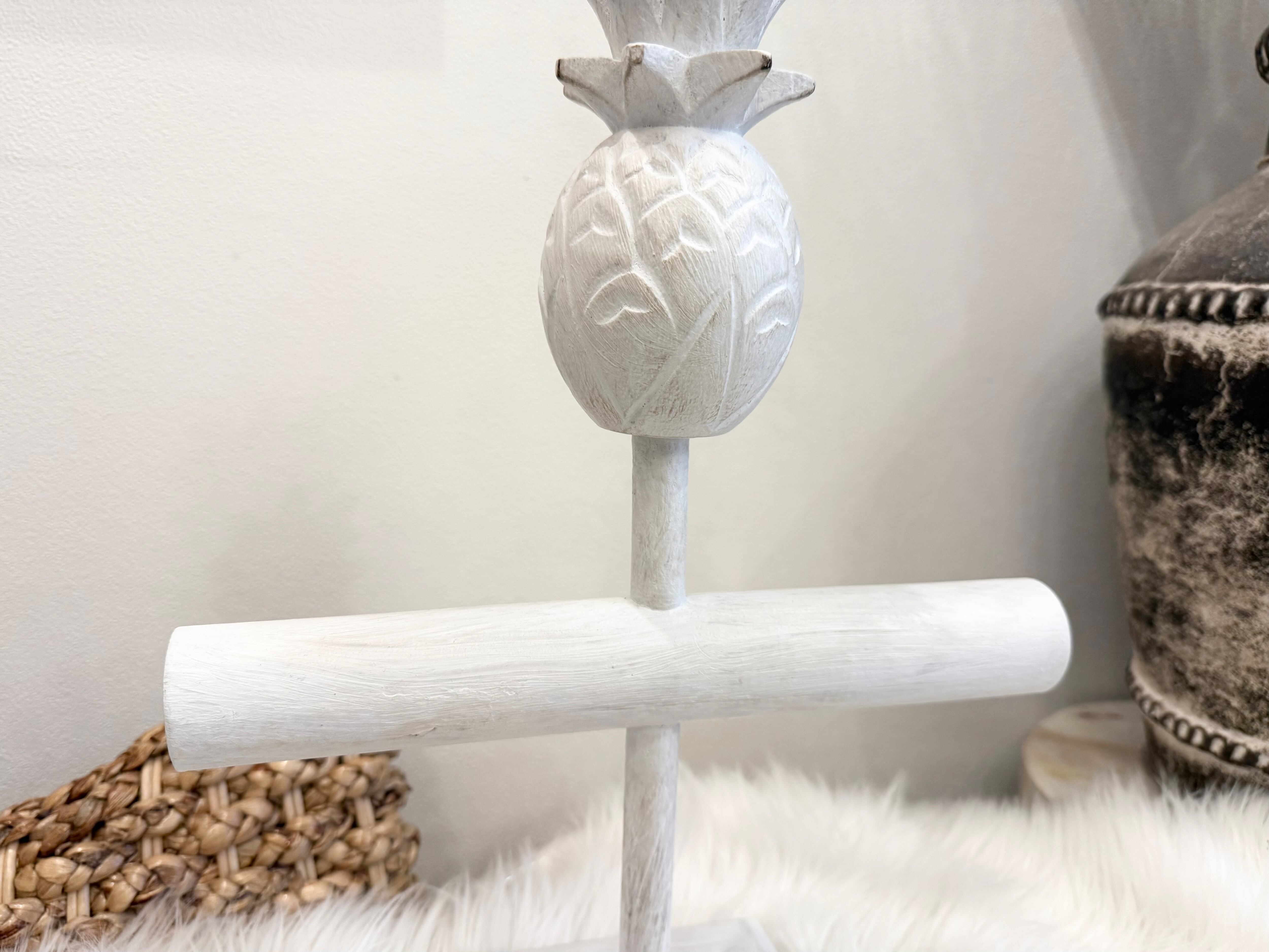 このwood pineapple design bracelet folderは、木製のブレスレットホルダーに可愛らしいパイナップルがデザインされたユニークなアイテムです。自然素材の温かみを感じることができ、どんなインテリアにもマッチするおしゃれな製品です。ブレスレットを美しくディスプレイしつつ、リゾート気分を感じさせるパイナップルのモチーフが特徴です。自宅での使用はもちろん、友人へのギフトにもおすすめのアイテムです!