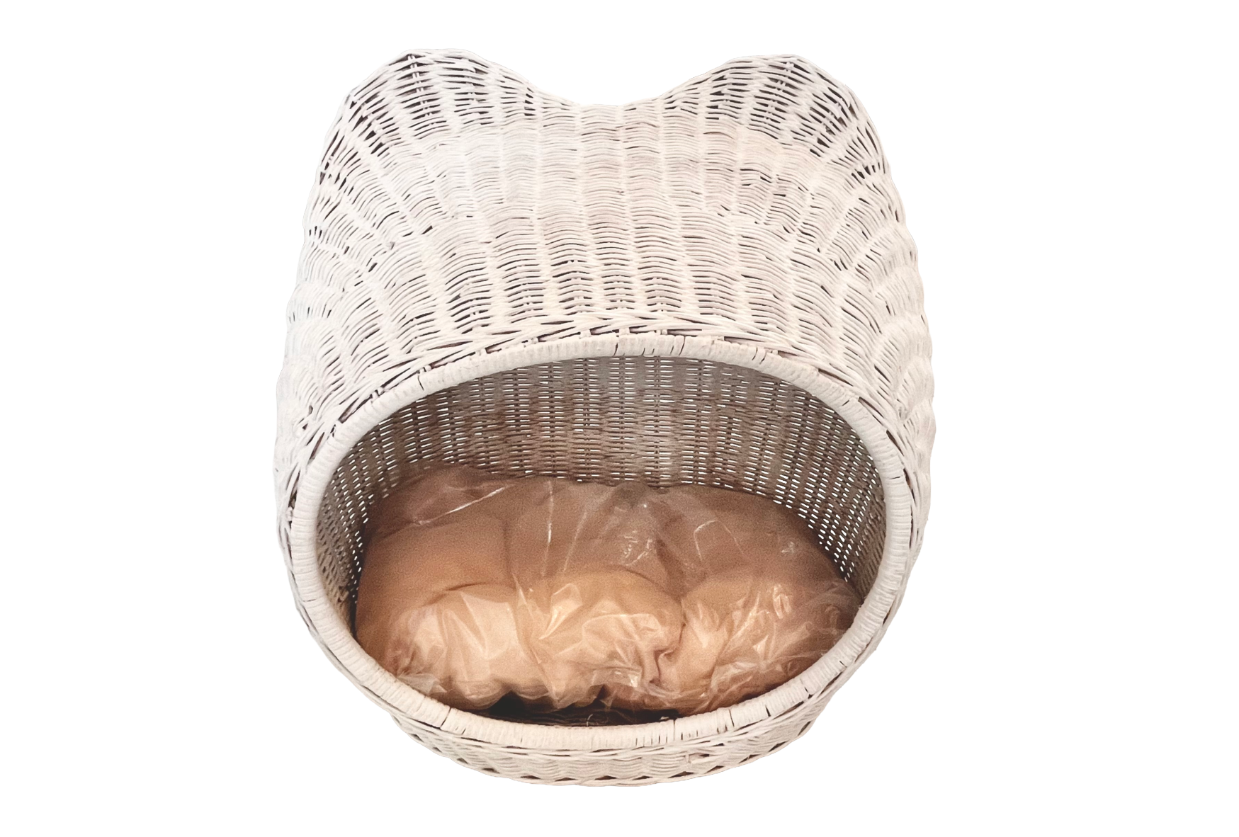 まるでインテリア雑貨のようにお部屋になじむ、ホワイトラタンのペットハウス。