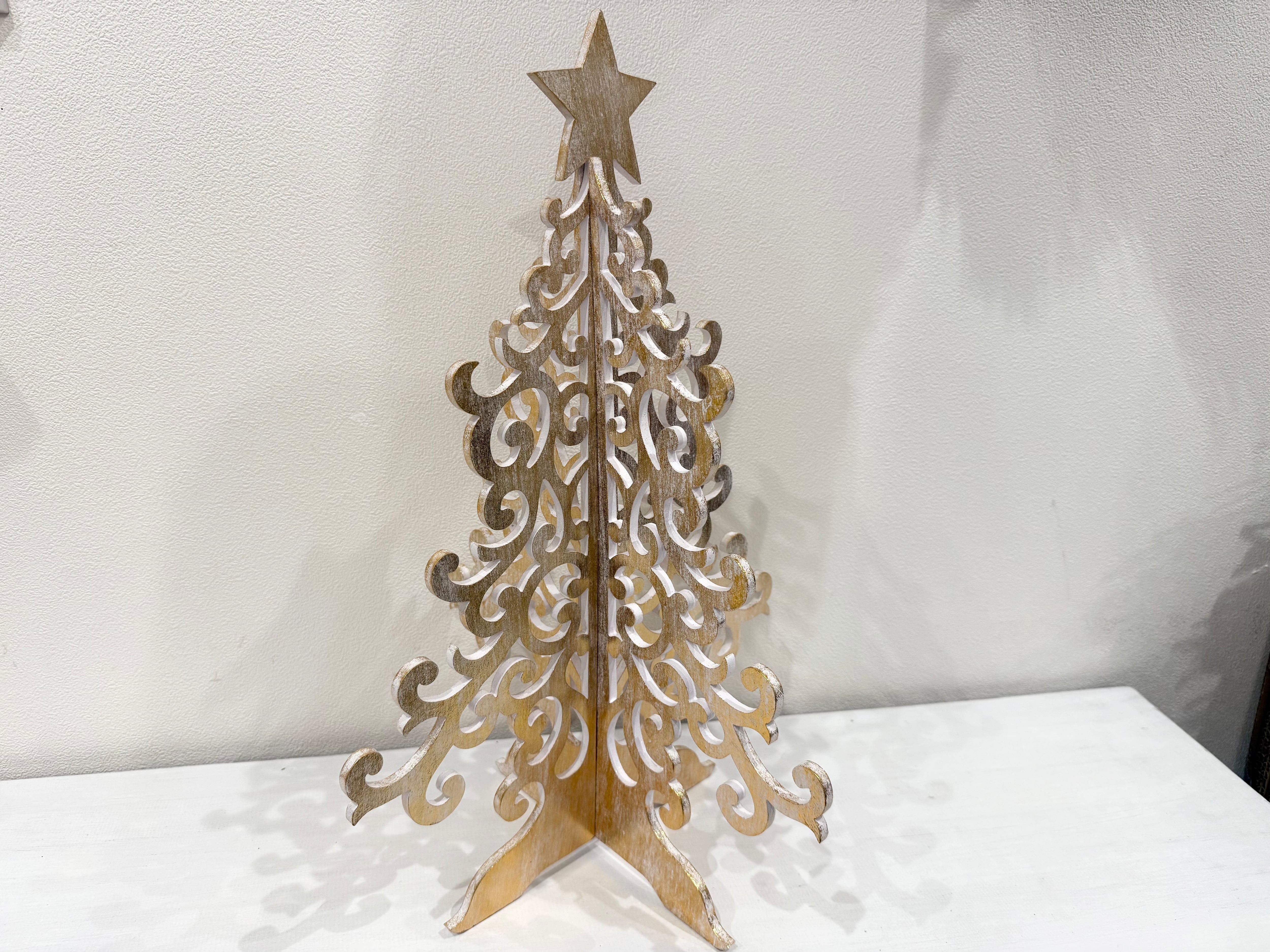 ホワイトゴールドカラーが魅力的な、組み立て式の木製クリスマスツリーです。おしゃれなデザインで、クリスマスの雰囲気をぐっと引き立てます!組み立ても簡単で、年末の準備がスムーズに行えるのが嬉しいポイント。収納時もコンパクトになるので、スペースを気にする必要がありません。
