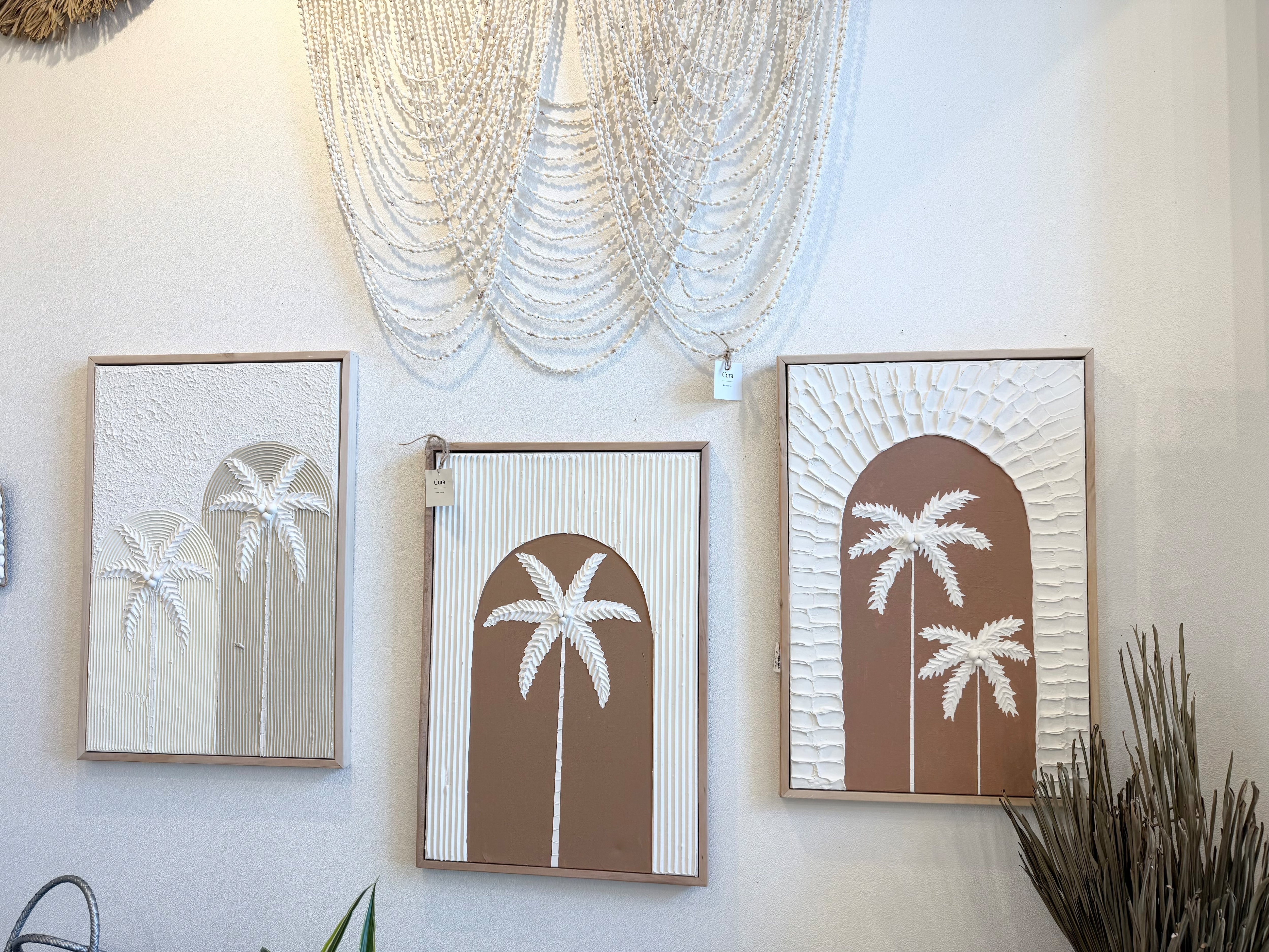 お洒落なインテリアを演出する「Palm tree art」が登場です!美しいパームツリーを描いたアートは、凹凸のあるデザインが特徴で、まるで浮き出るような魅力を持っています。このアートを飾れば、お部屋が一層リゾート感溢れる空間に変わります。特別な時間を過ごすための素敵なアクセントとして、ぜひお使いください!