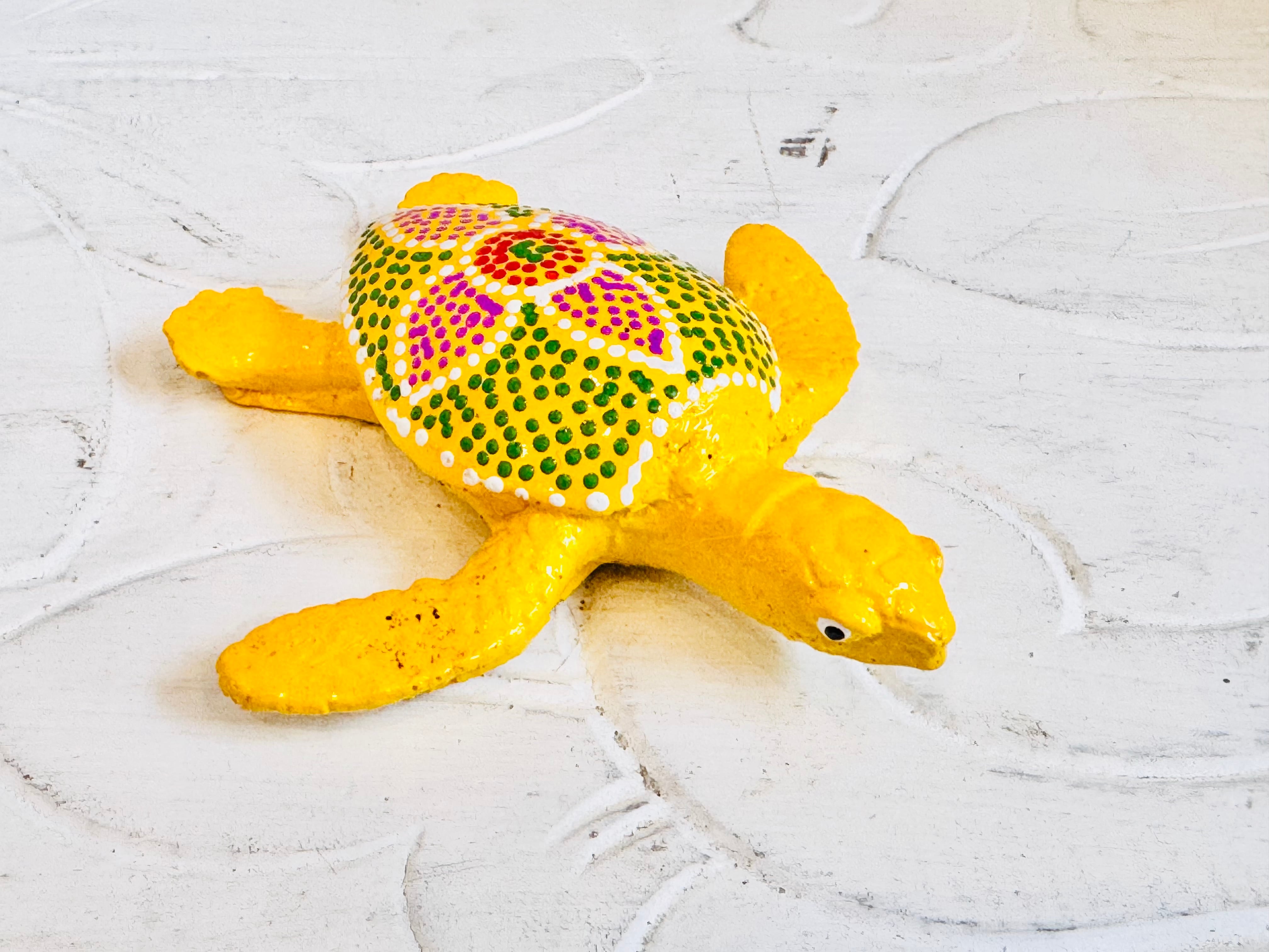 手のひらサイズの可愛らしい亀のオブジェは、レジン素材で作られており、どこに置いても温かみを感じるデザインが魅力です。小さな亀があなたの空間に癒しを運んでくれること間違いなし!デスクやリビングに置くことで、ほっこりとした雰囲気を演出できます。