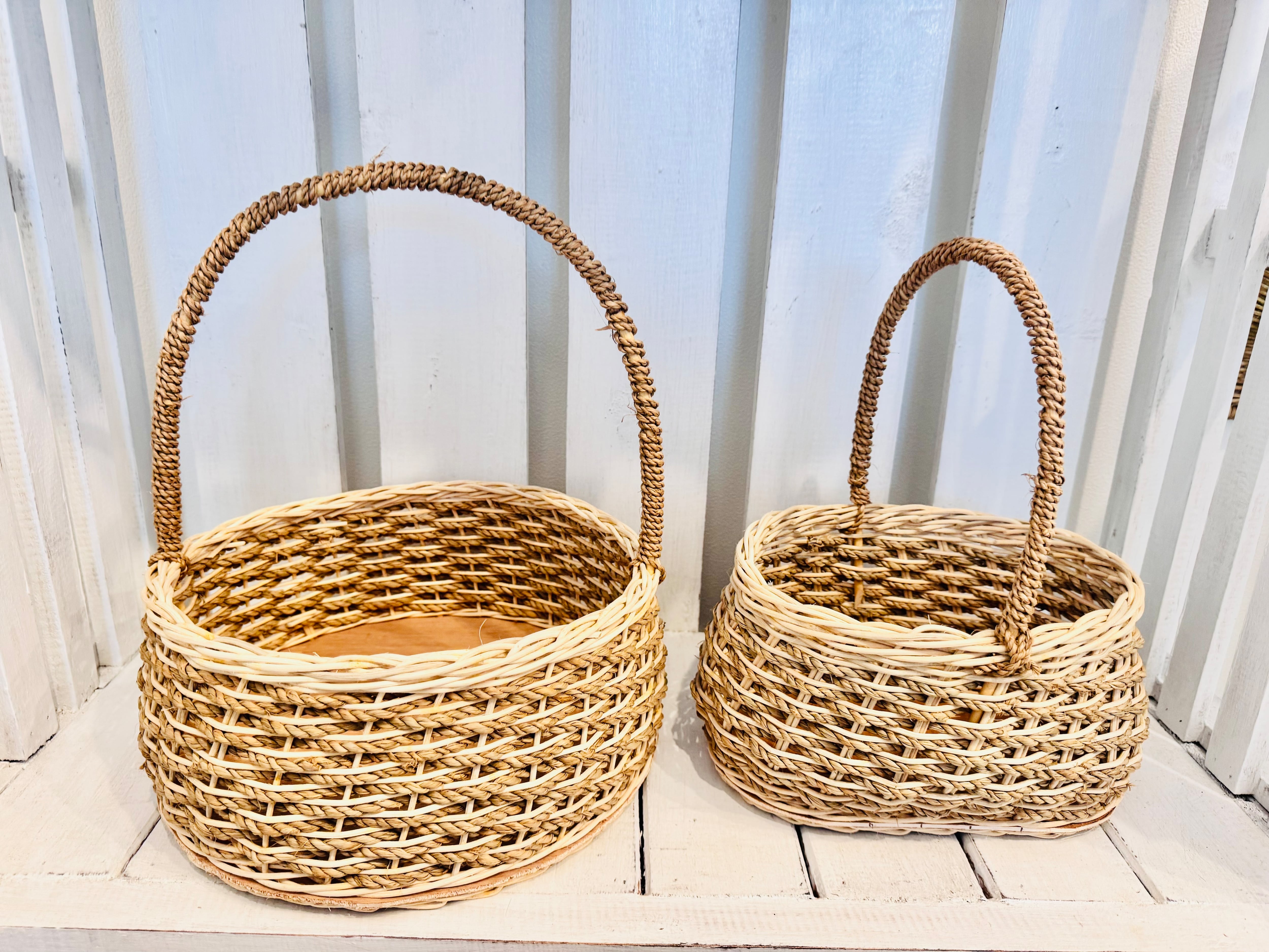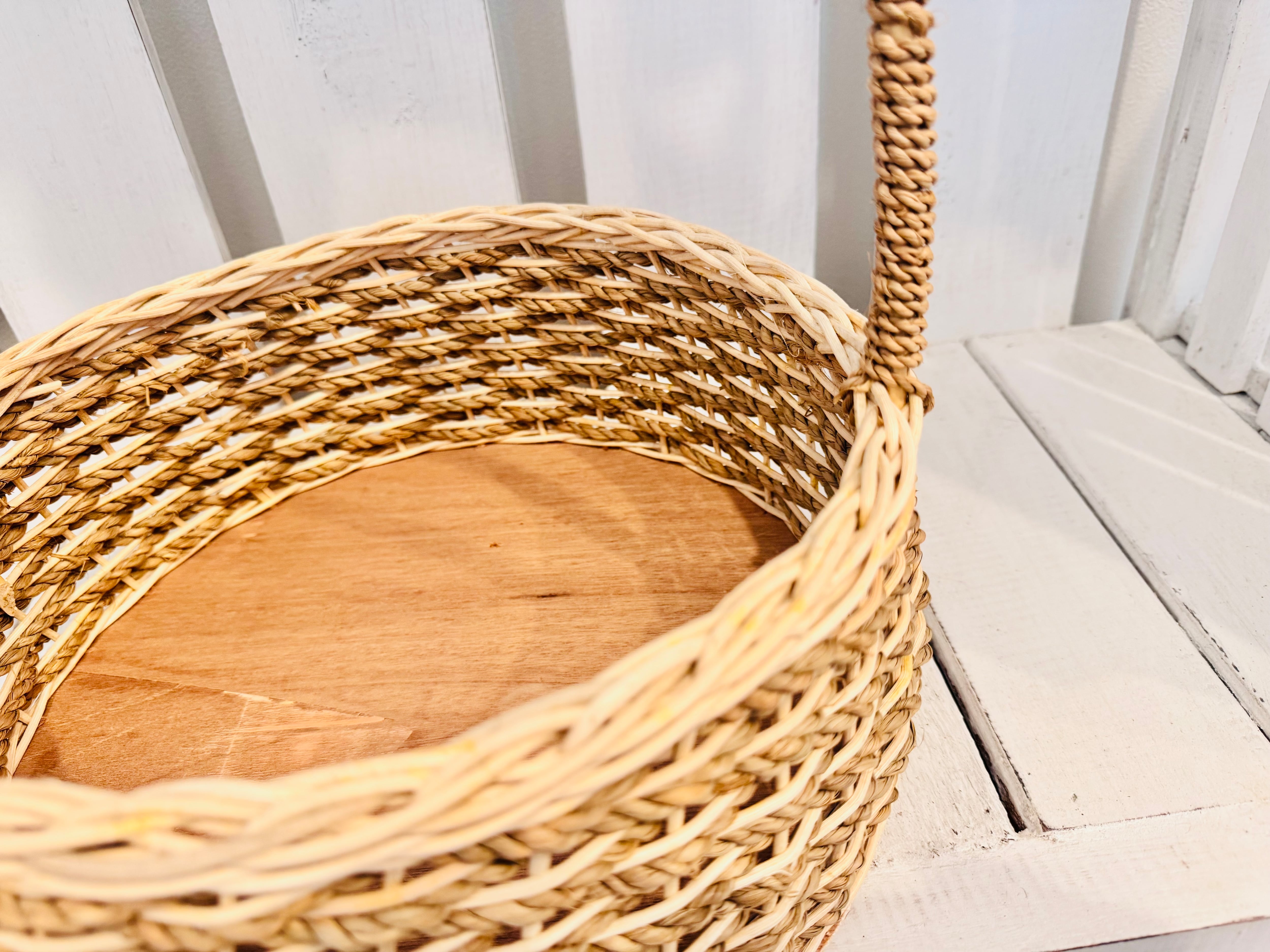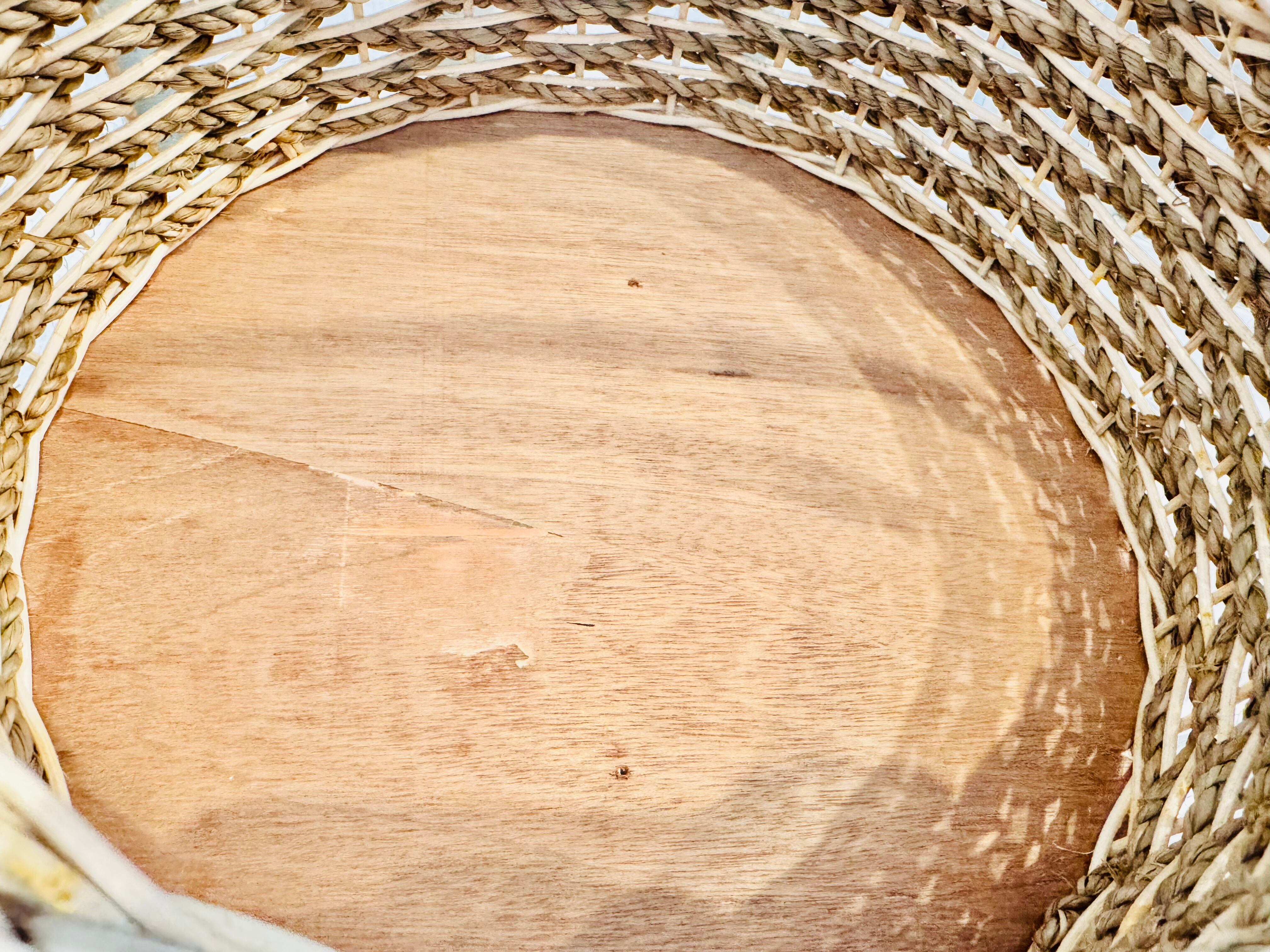 木製の底板を持ち、ラタンとシーグラスを組み合わせて編み込んだこのバスケットは、どんなインテリアにもマッチするデザインが魅力です。一つ一つ手作業で作られており、そのために生まれる味わい深い質感は、どこか温かみを感じさせてくれます。とても軽いので、持ち運びも簡単です!