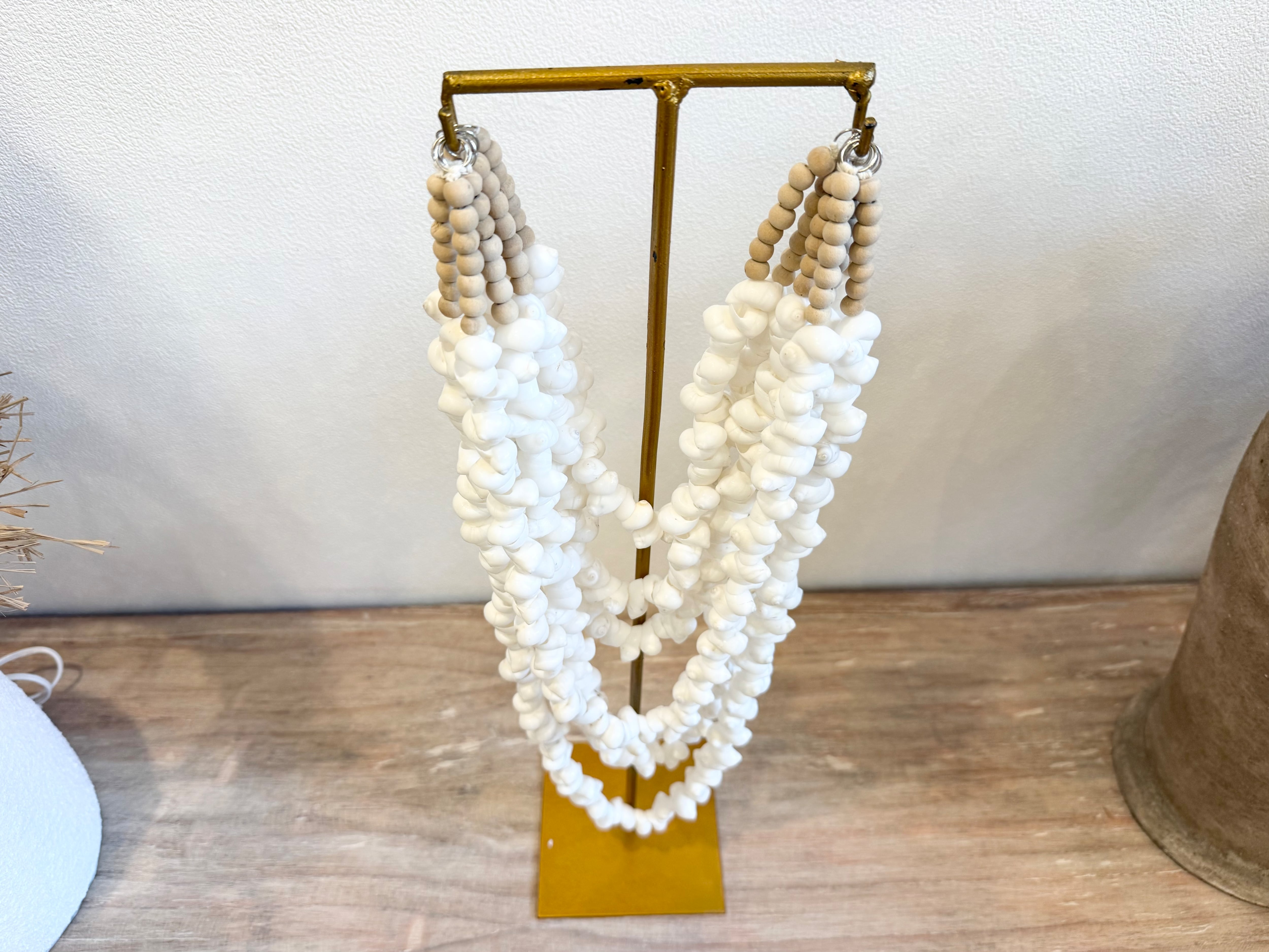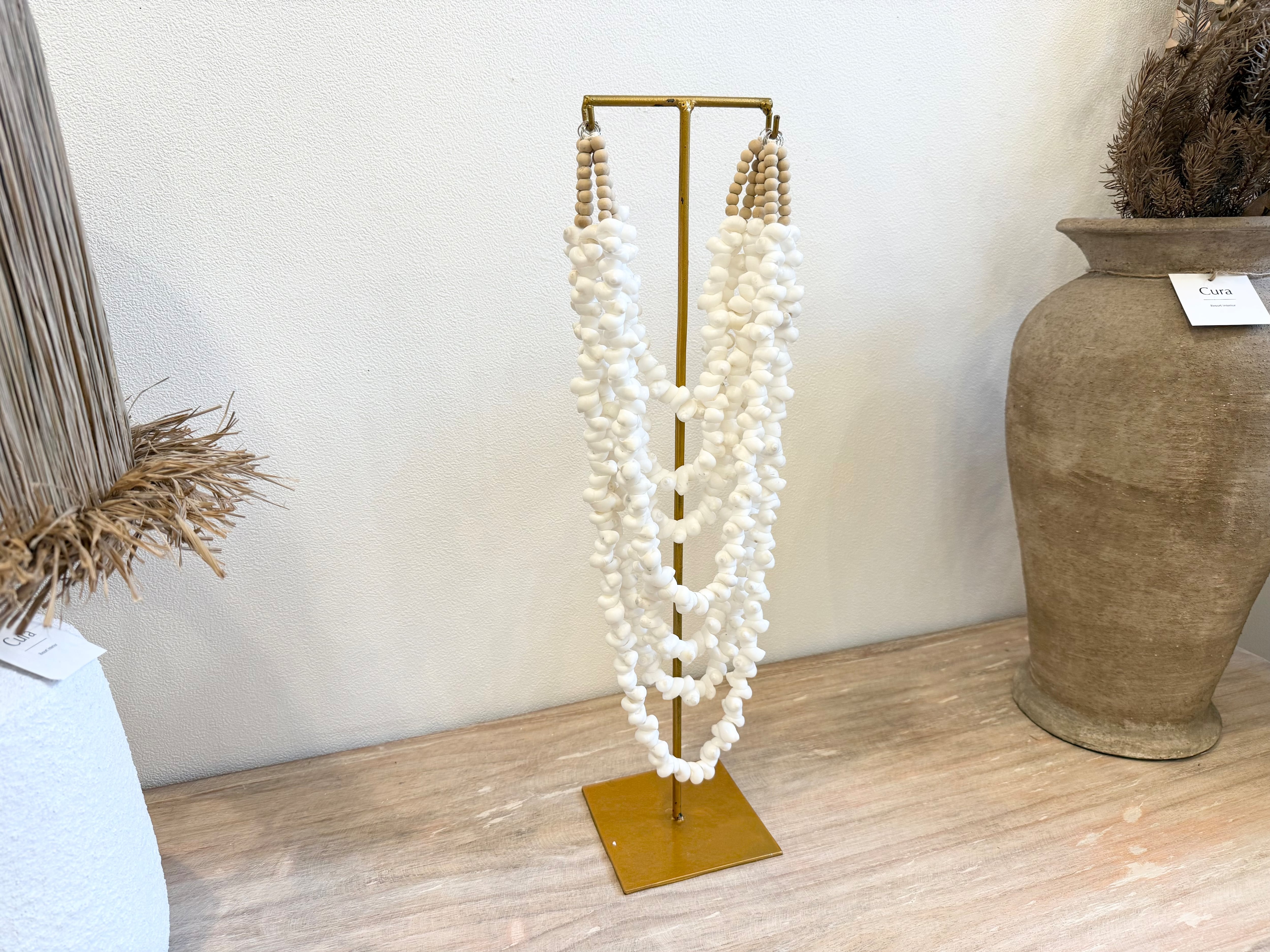 この商品は、小さな貝がネックレスのようにデザインされたスタンド用オブジェで、インテリアに品のある個性をプラスします。スタンドにかけてディスプレイすることで、空間にナチュラルな美しさを演出し、心を癒すひとときを提供します!