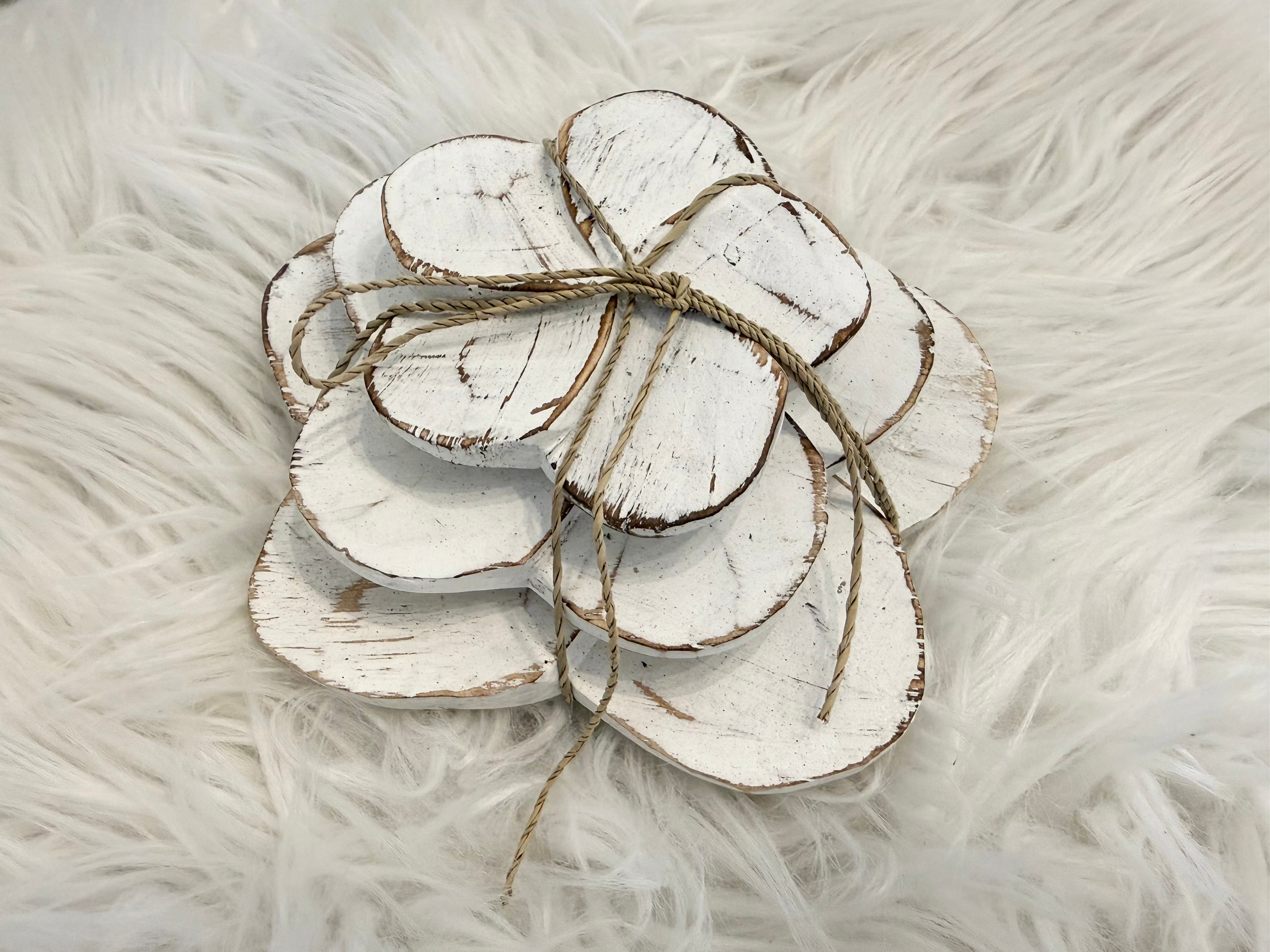 異なるサイズのプルメリアは、空間のアクセントとして活躍します。木のぬくもりを感じながら、このオブジェたちがあなたの日常に自然の美しさを届けます。お部屋に置くだけで、心地よいリラックス空間が広がりますよ!