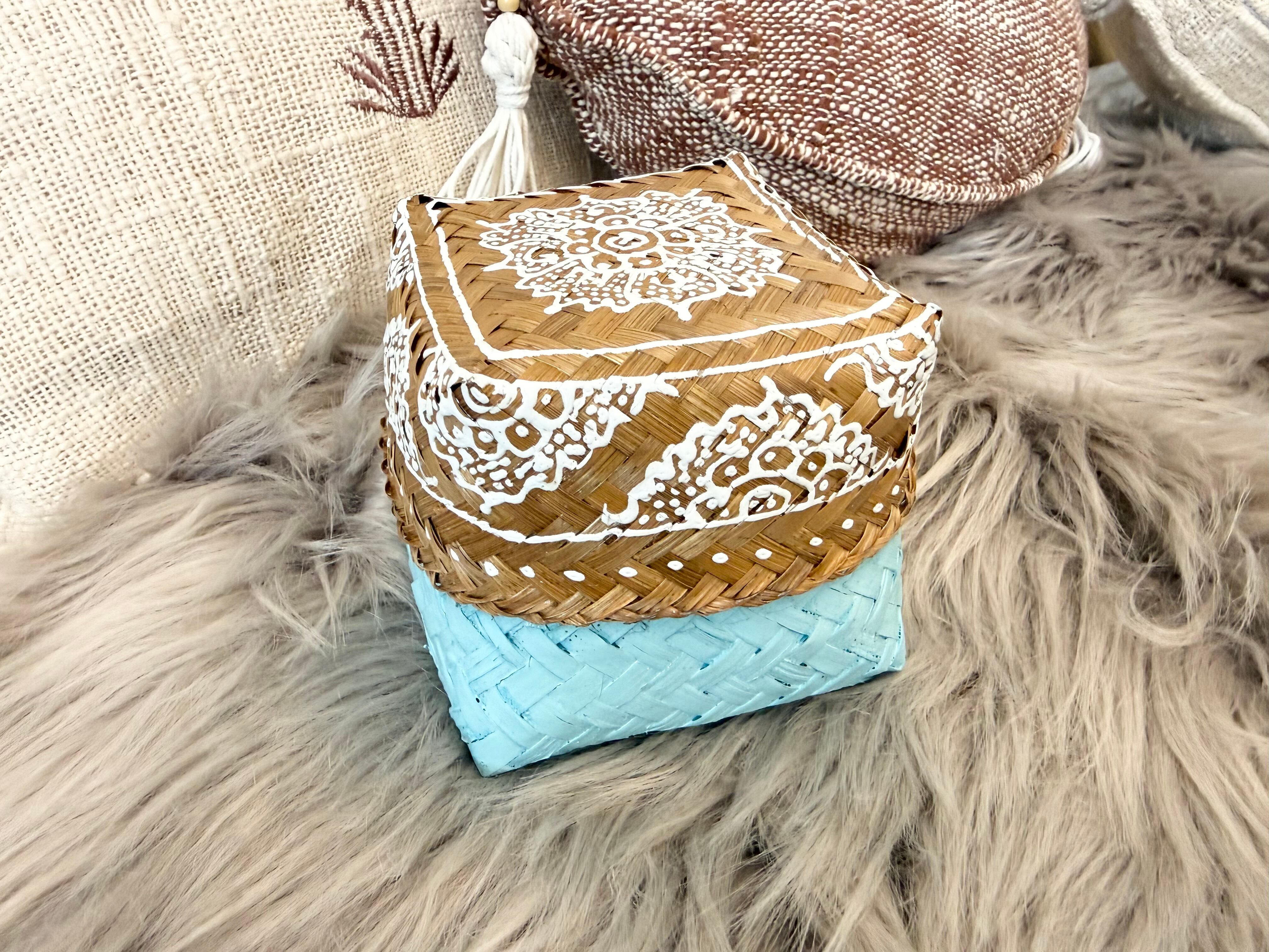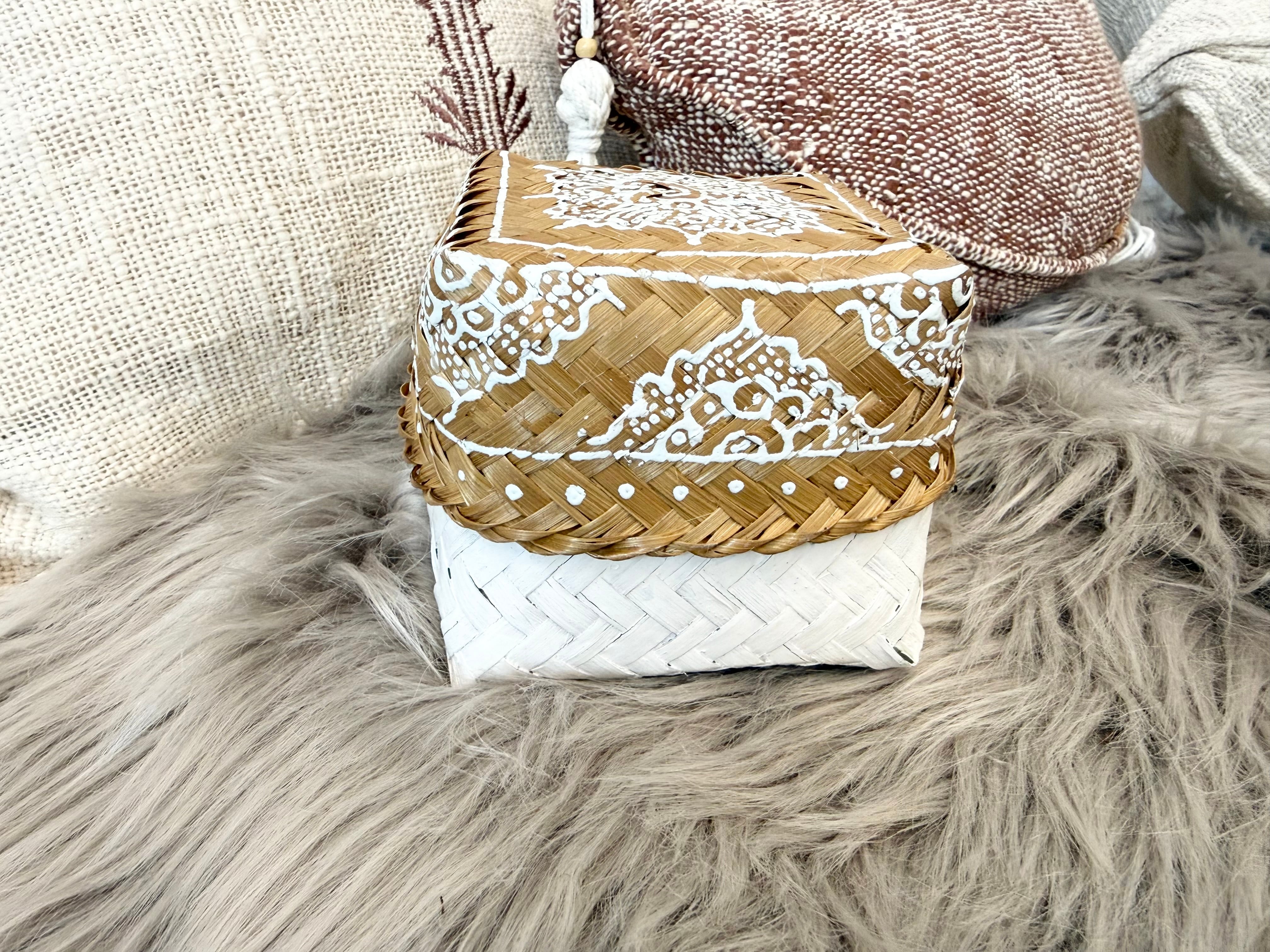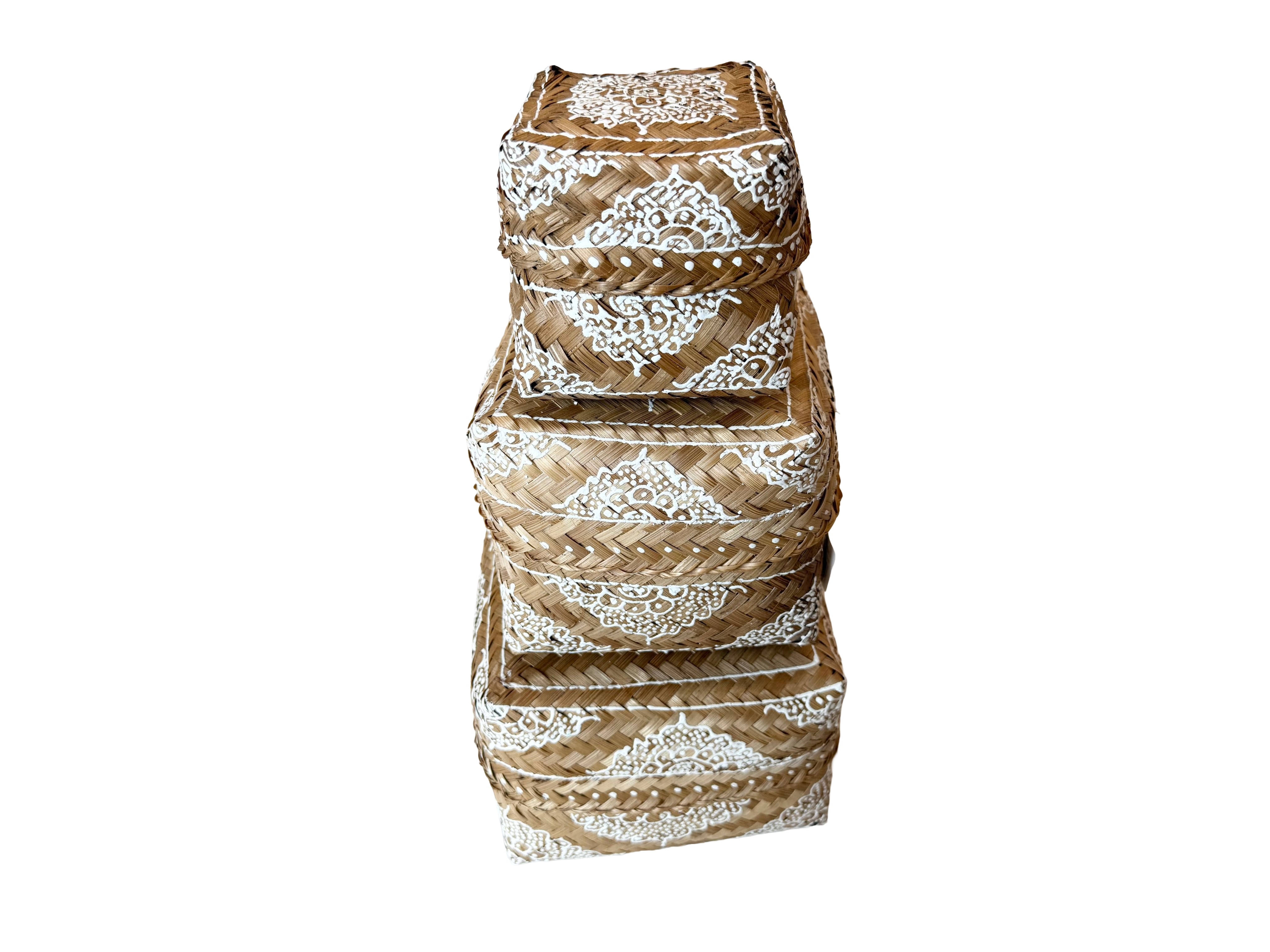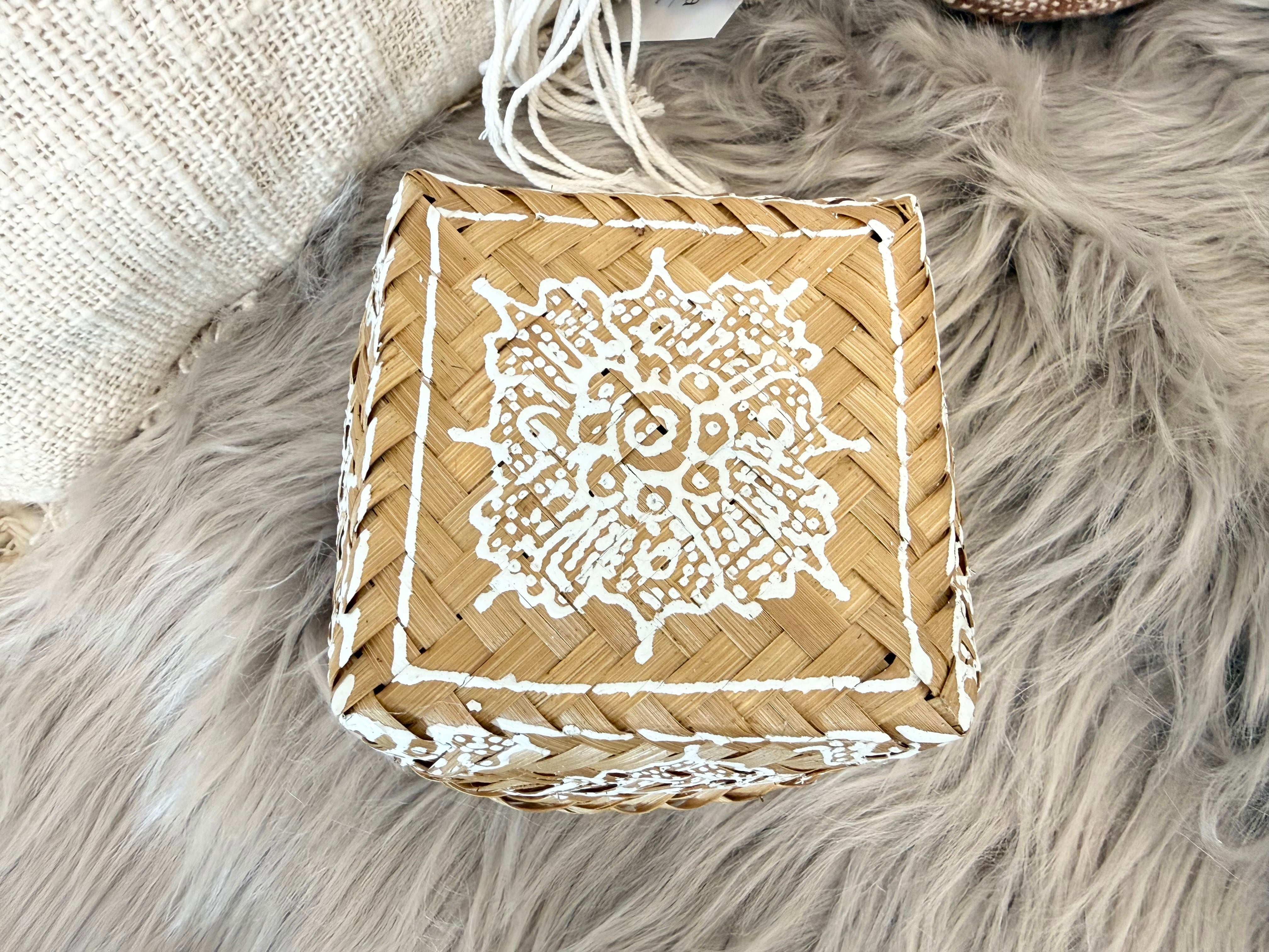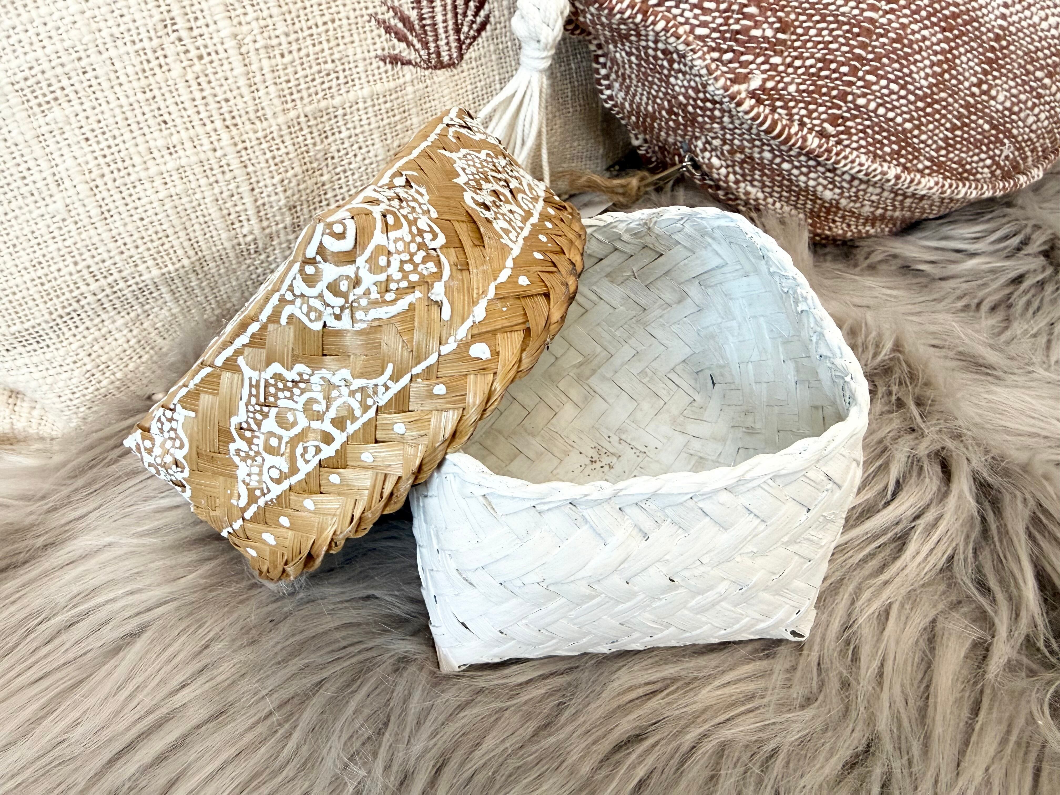 ソカシ(Sokasi)は、バリ島のヒンドゥー教徒が祭礼でお供え物を入れて頭に載せて寺院へ運ぶ、伝統的な蓋付きの竹製カゴです 。ペイントが可愛く、小物を入れたり、蓋付きなのでアメニティなどを入れるのにも便利です。サイズは S M Lがあります。 生産国 インドネシア 素材 竹 サイズ 10×10×10cm