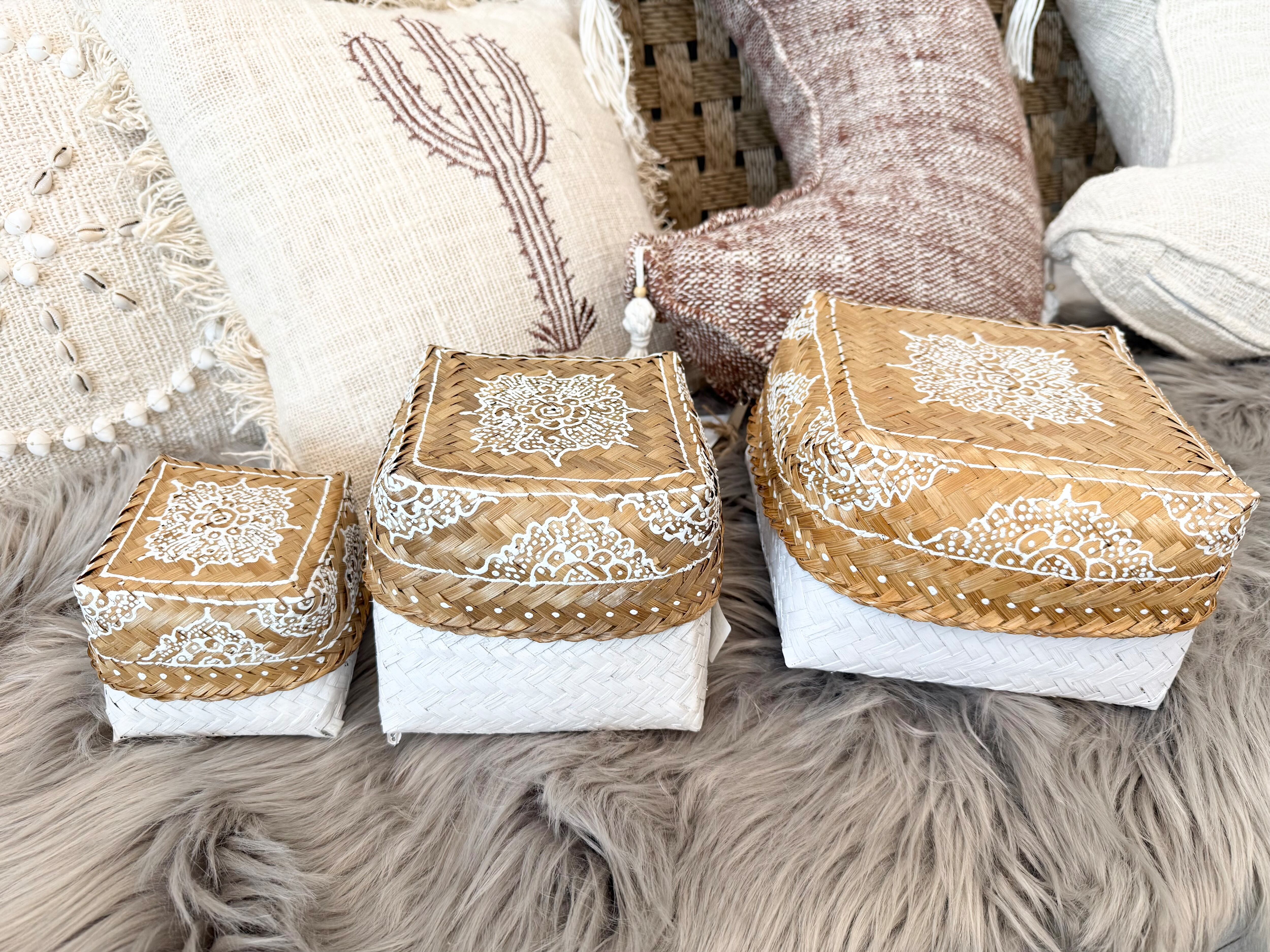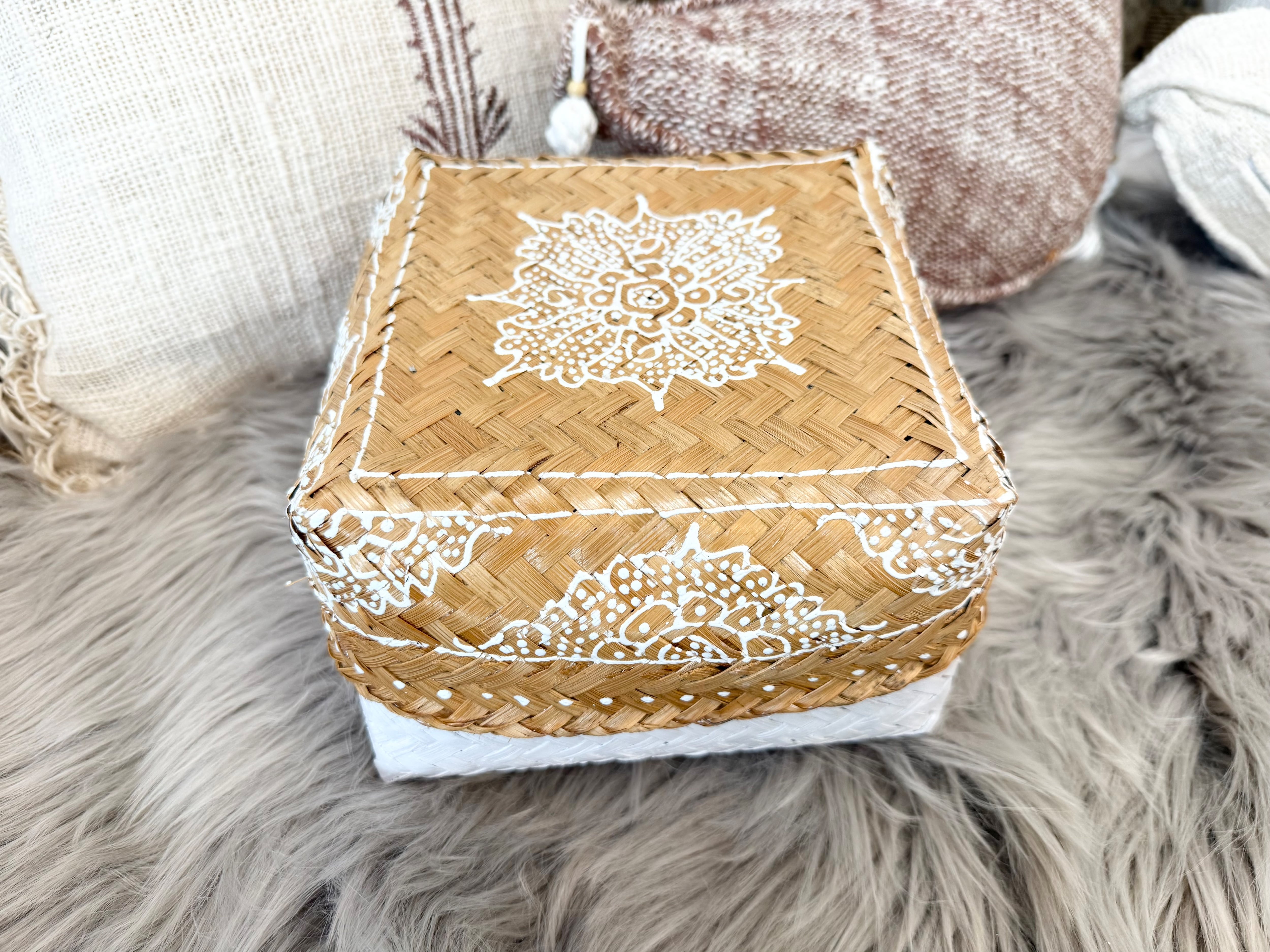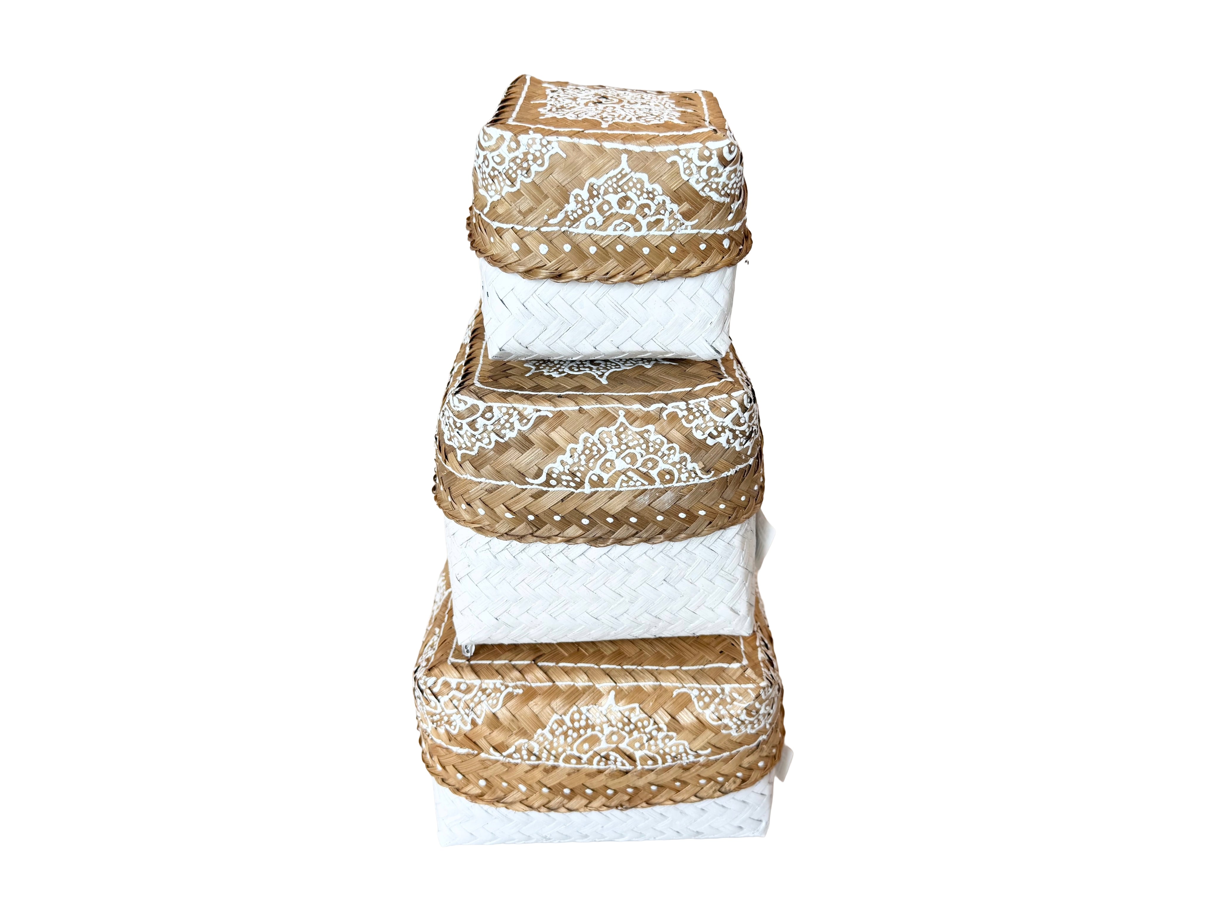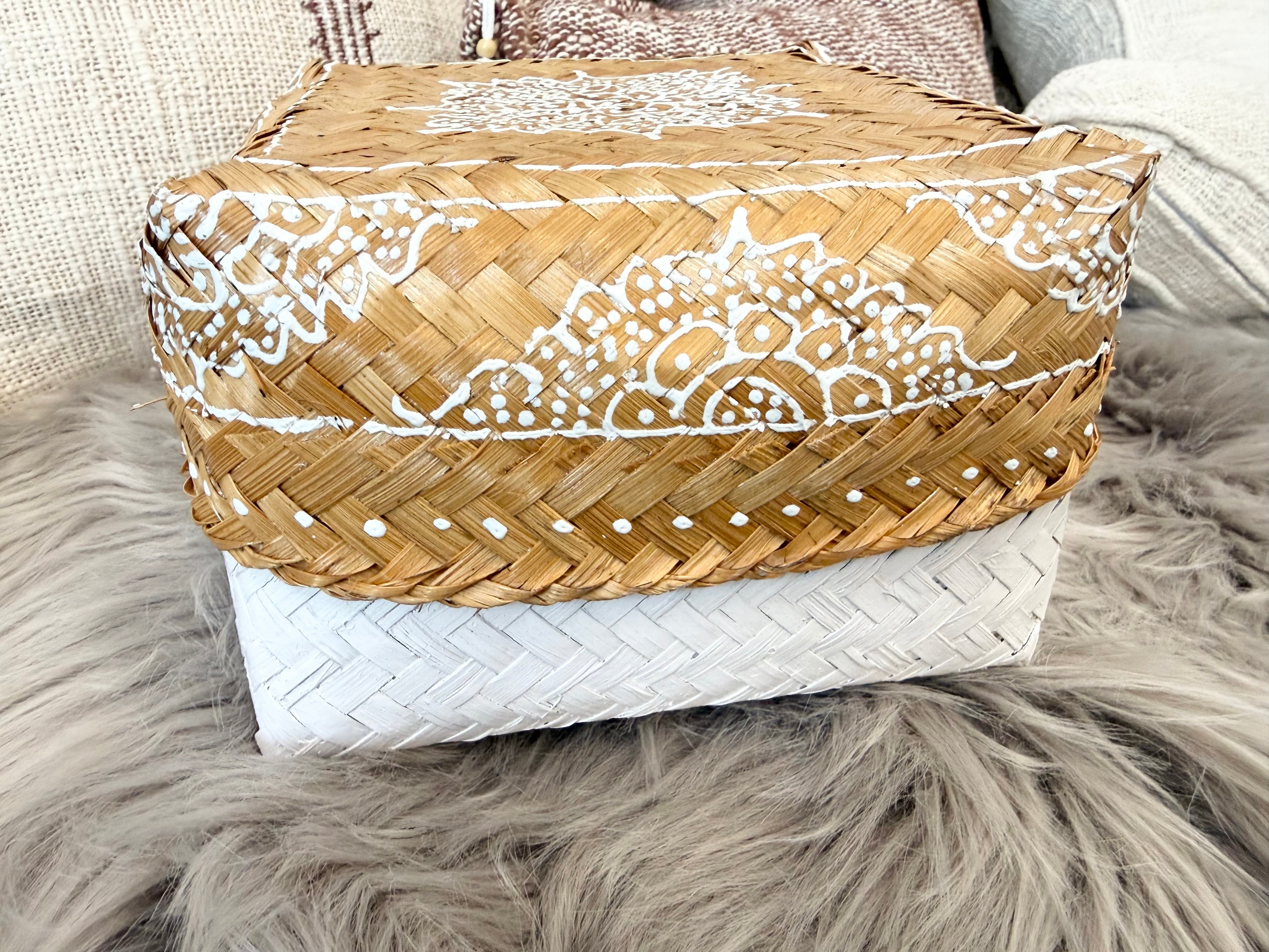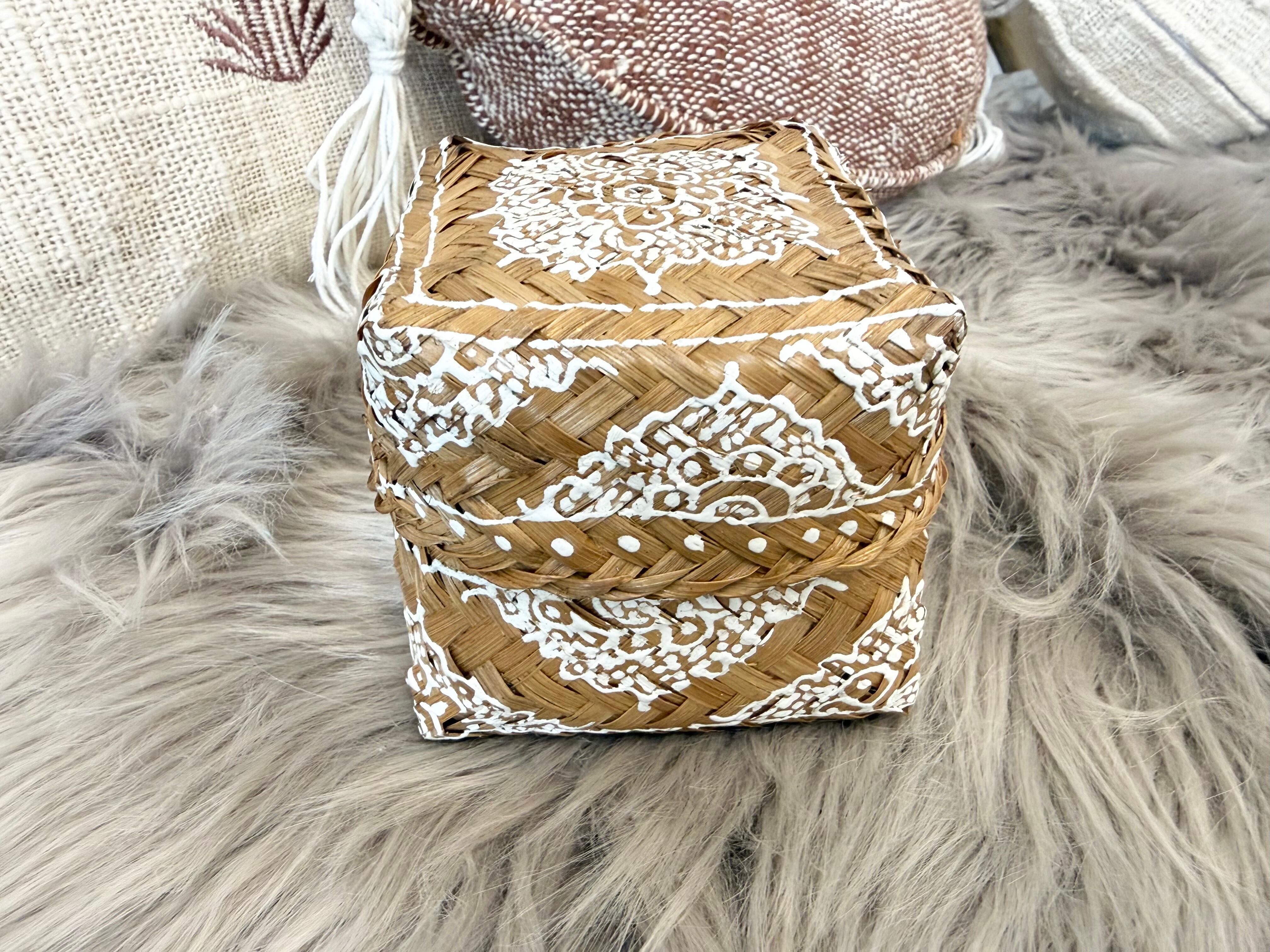 ソカシ(Sokasi)は、バリ島のヒンドゥー教徒が祭礼でお供え物を入れて頭に載せて寺院へ運ぶ、伝統的な蓋付きの竹製カゴです 。ペイントが可愛く、小物を入れたり、蓋付きなのでアメニティなどを入れるのにも便利です。サイズは S M Lがあります。 生産国 インドネシア 素材 竹 サイズ 18×18×15cm