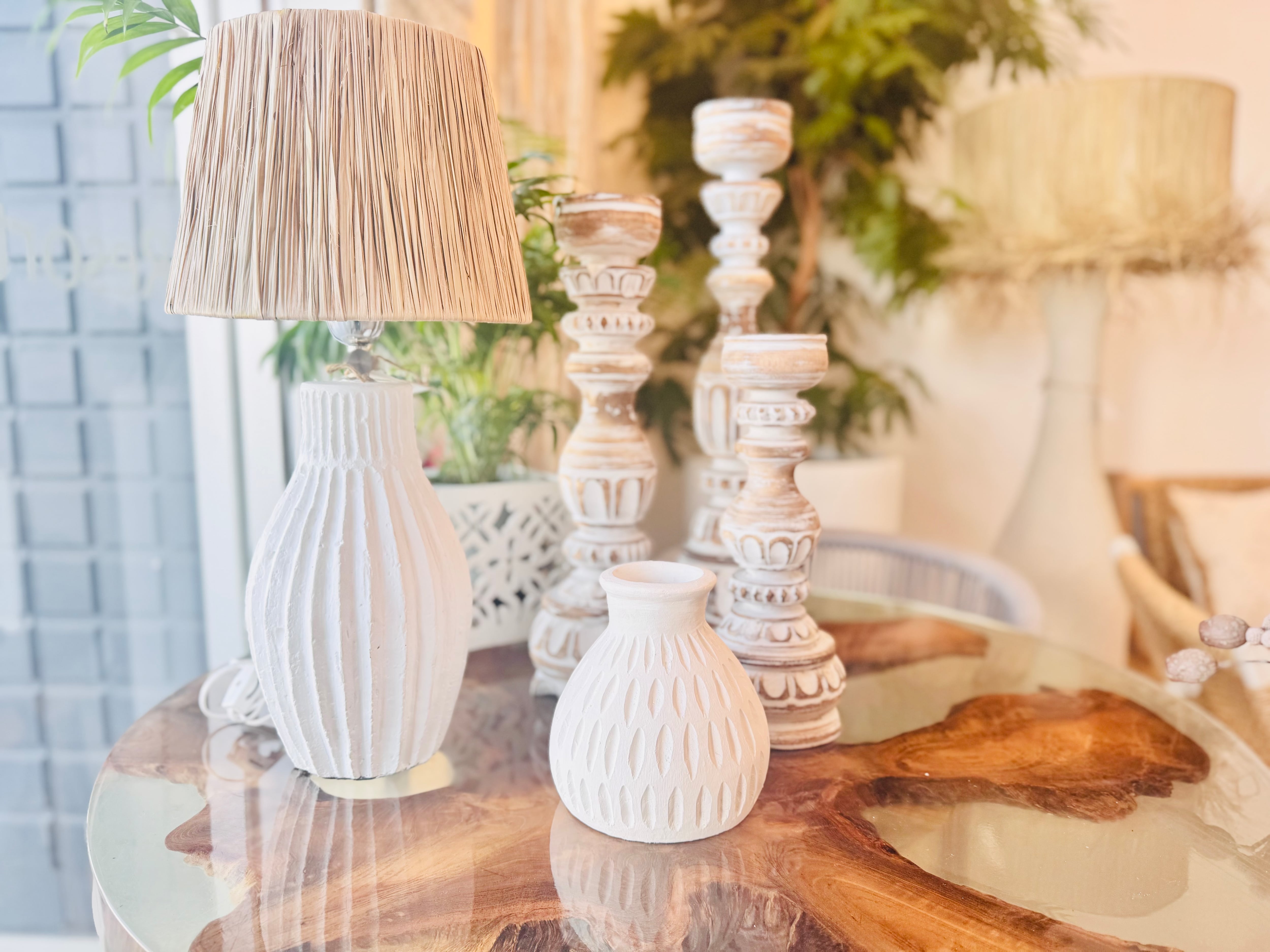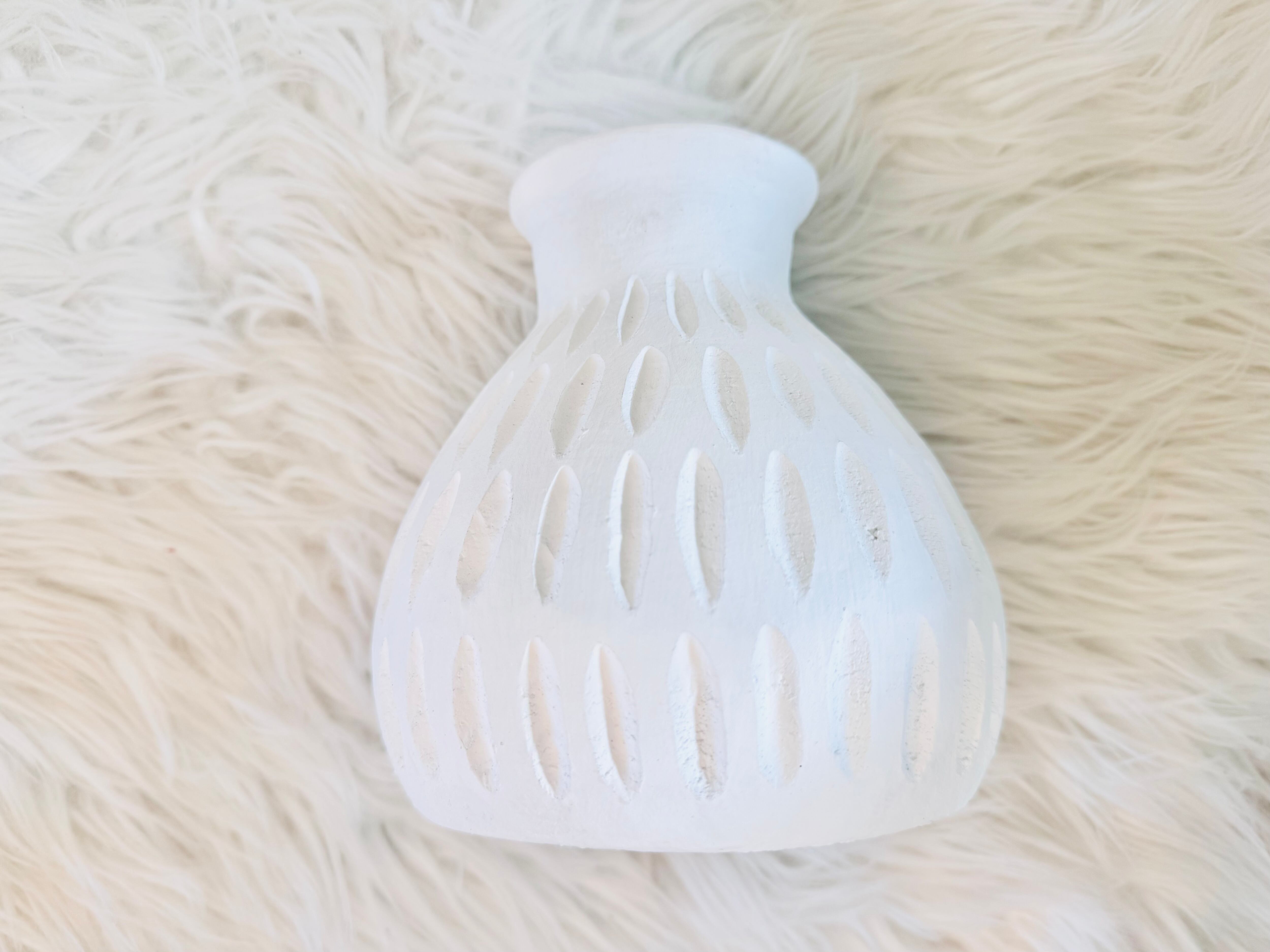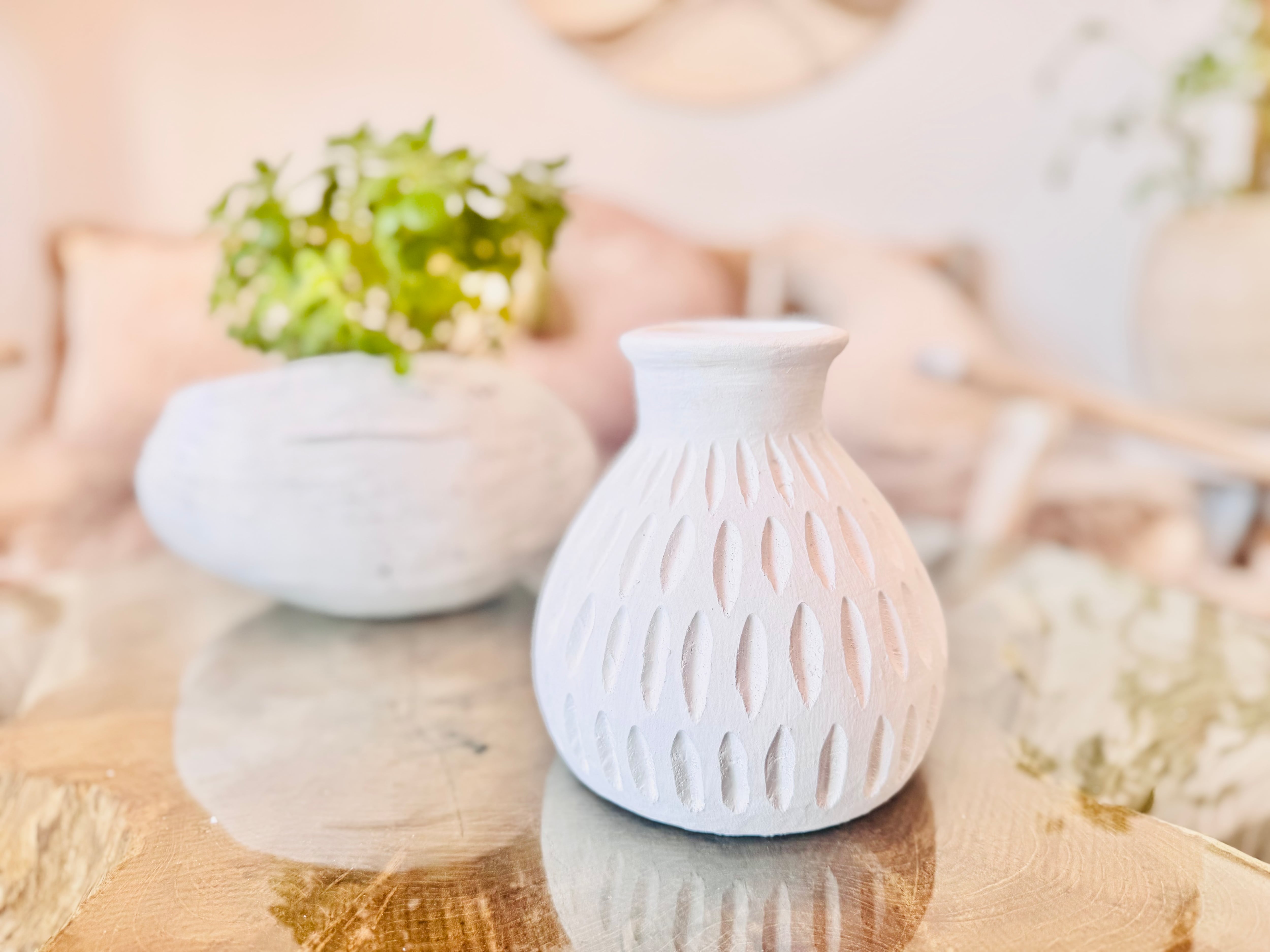 温かみのあるテラコッタ素材で作られたフラワーベースです。コロンとした形状が特徴で、お部屋に柔らかな雰囲気を添えます。