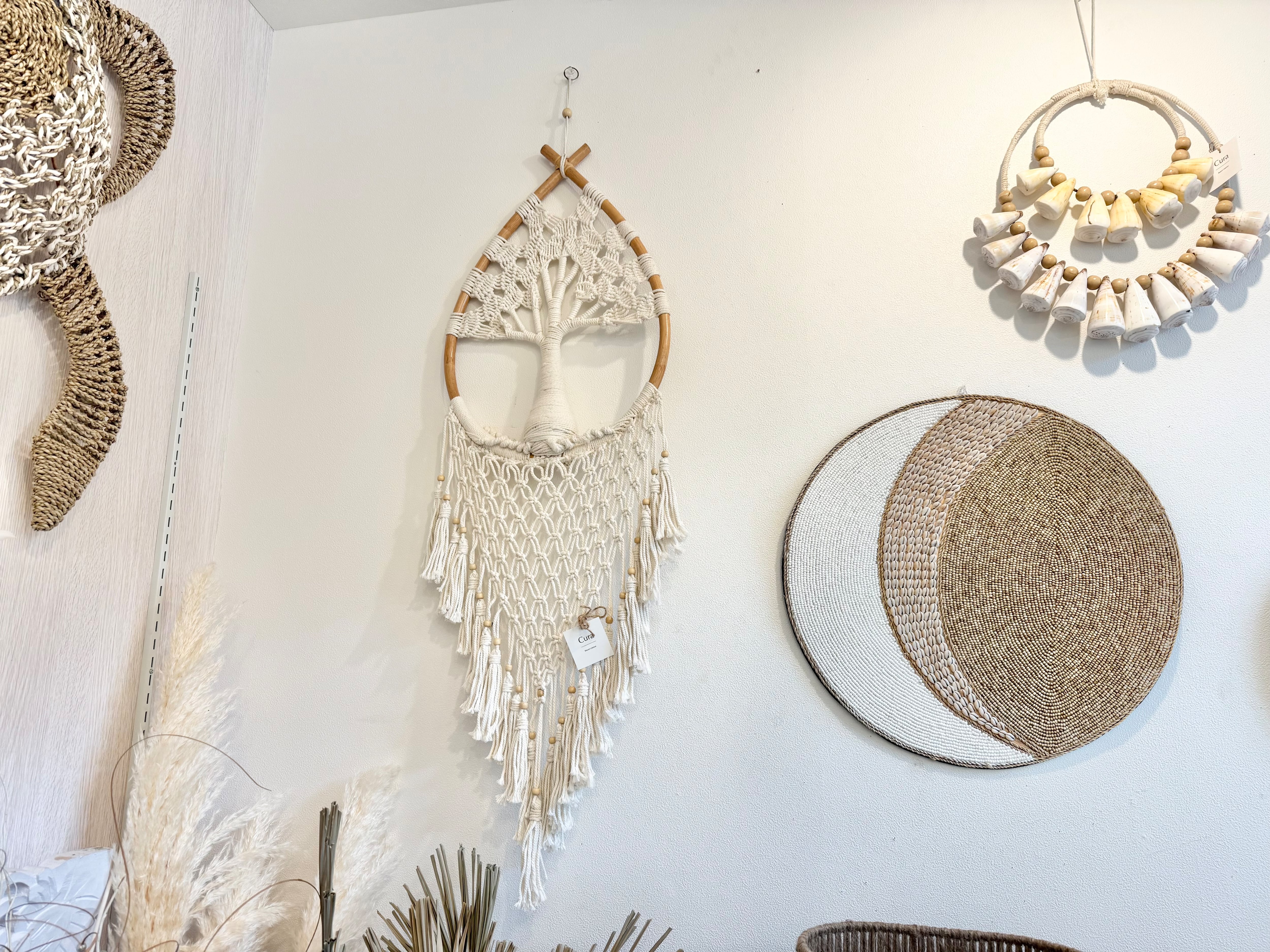 見事な編み込みによるテクスチャーが、ナチュラルで心地よい空間を演出し、どんなインテリアにも調和します。お気に入りの場所に吊るすだけで、癒しの雰囲気をプラスしますので、インテリアのアクセントにも最適です。