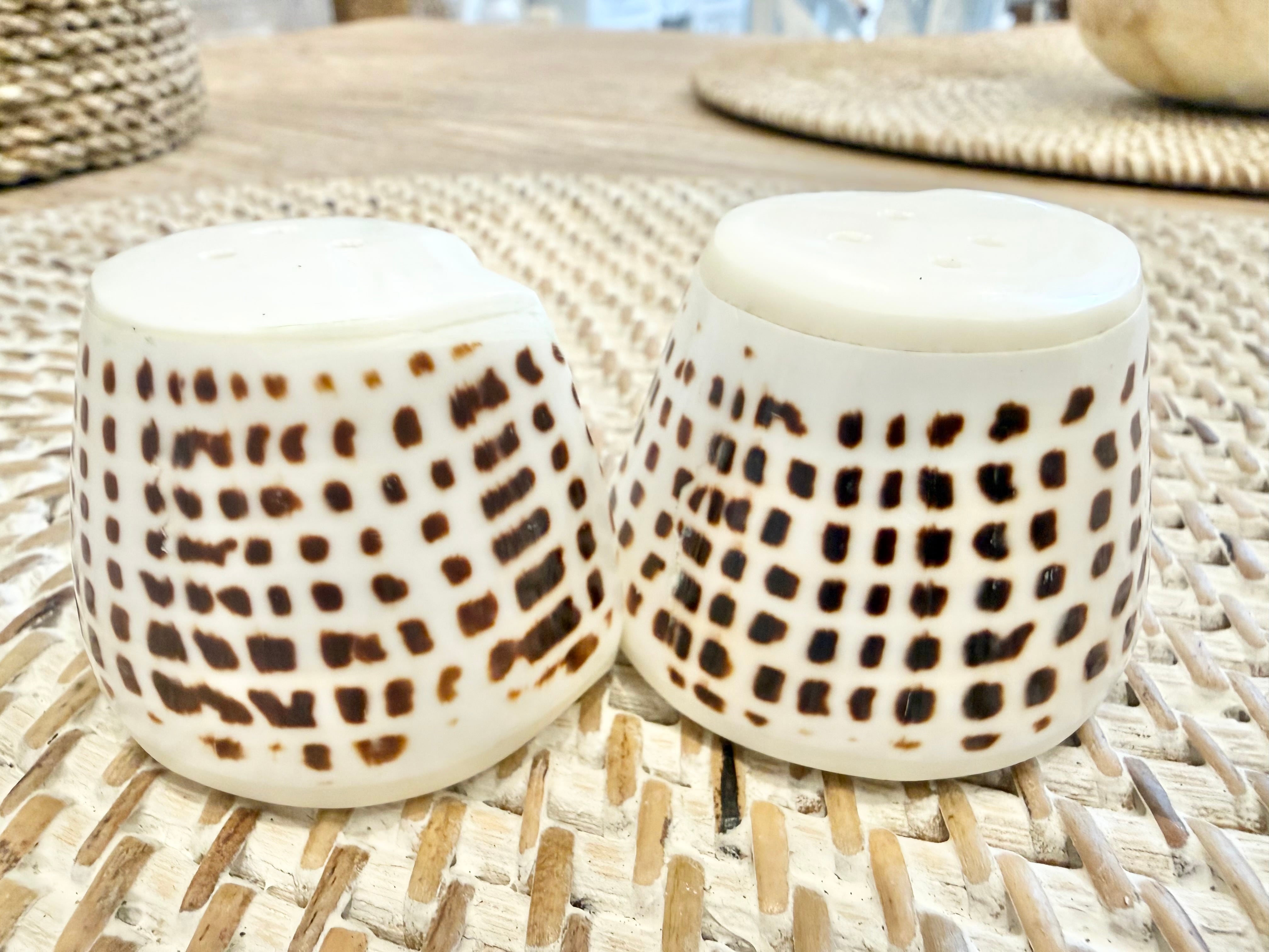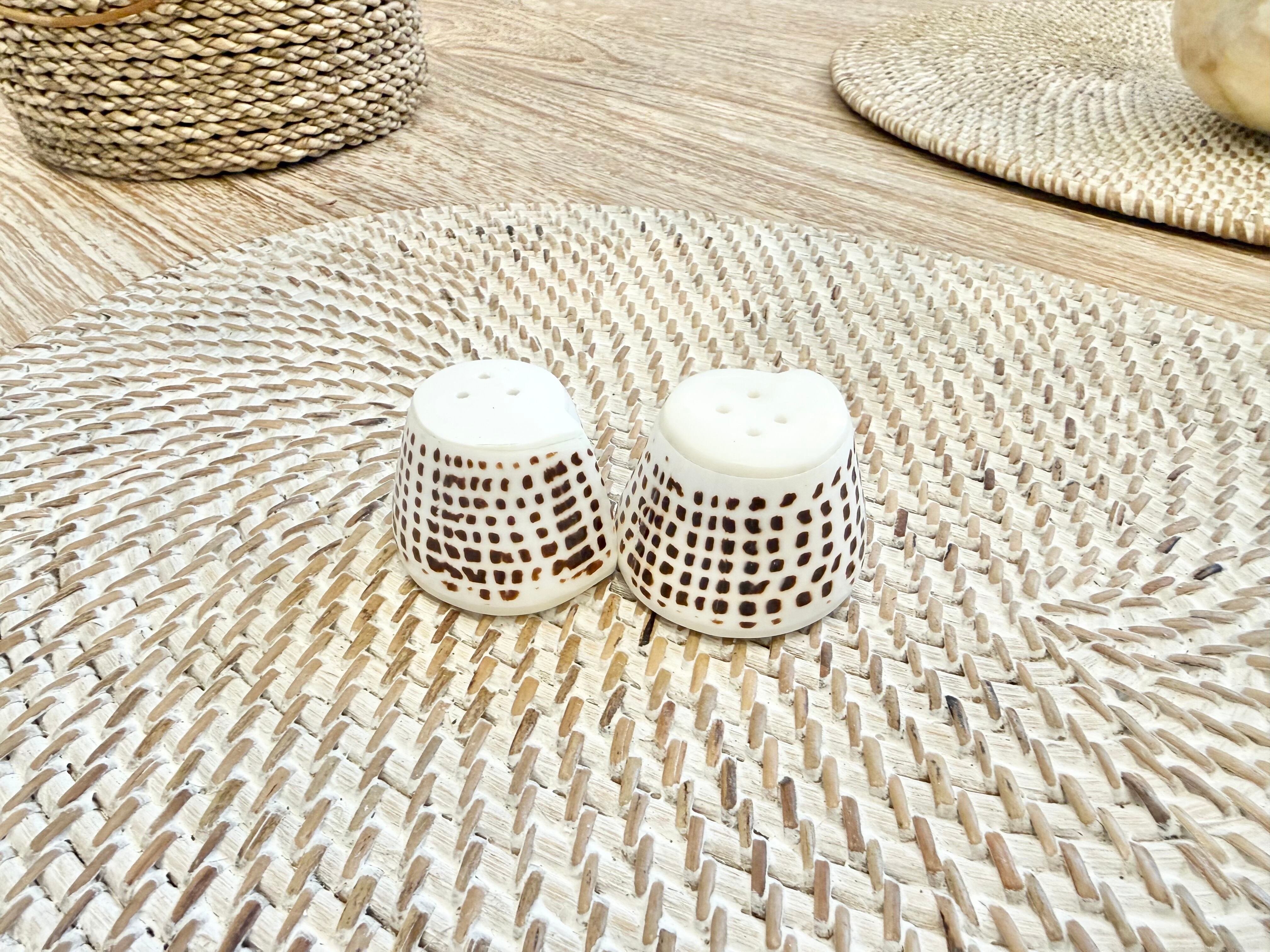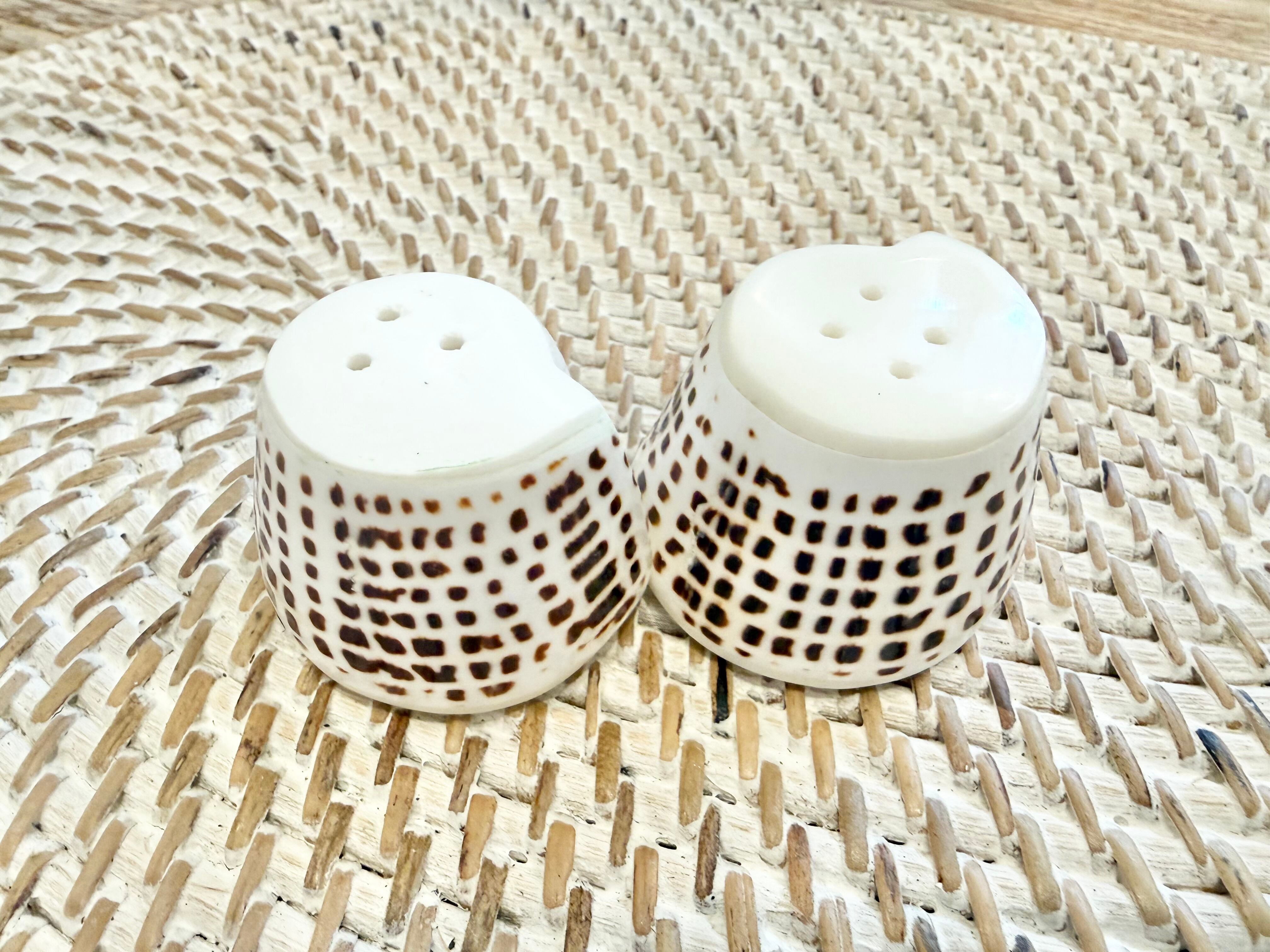 天然のシェルをそのまま活かした、お塩と胡椒を入れるためのボトル2セットです。小さいサイズながら、その独特な美しさであなたのテーブルを華やかに演出します。
