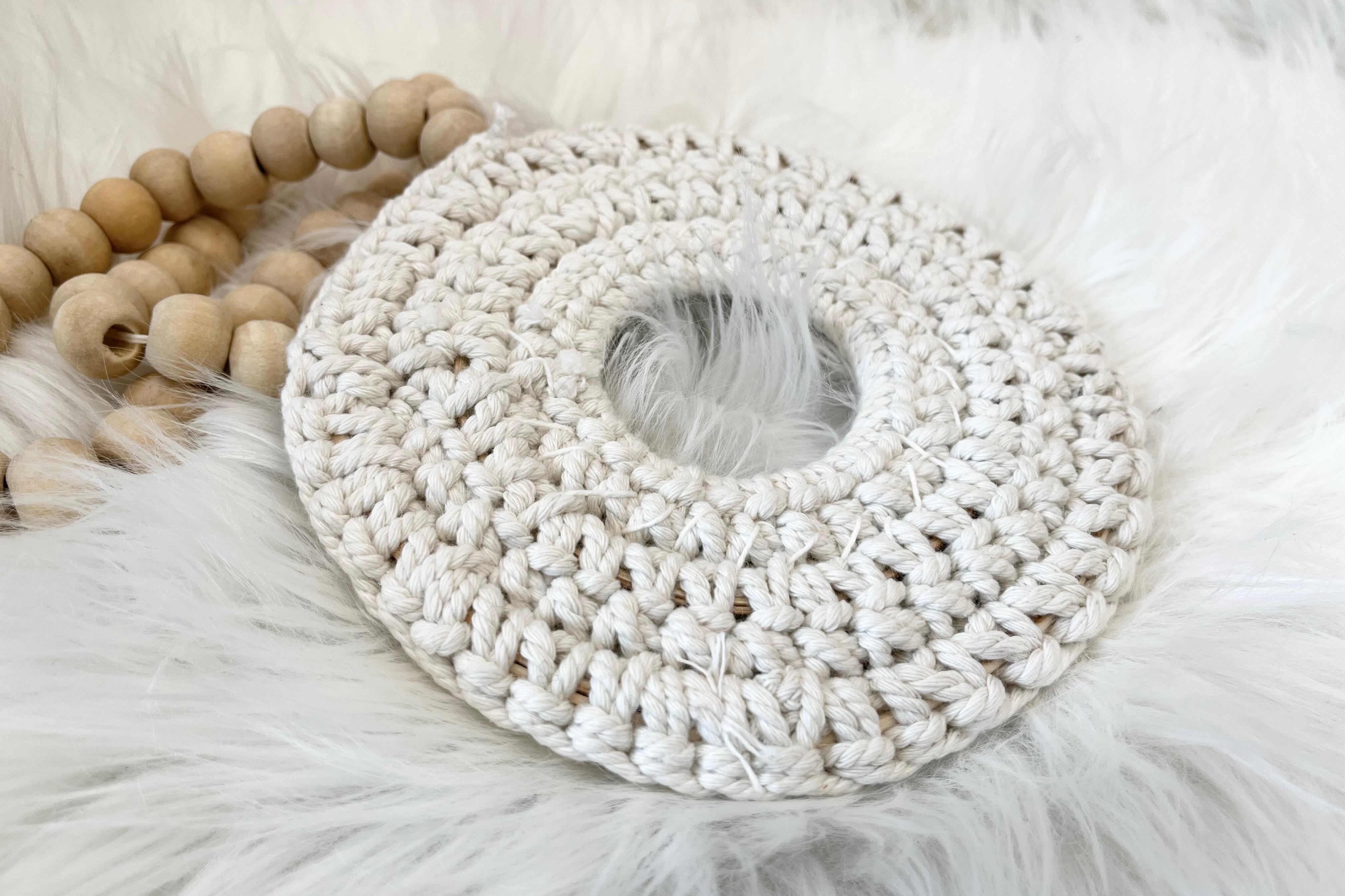 小さな貝をサークル状に編まれたマクラメに貼り付けて作られたハンギングオブジェです。