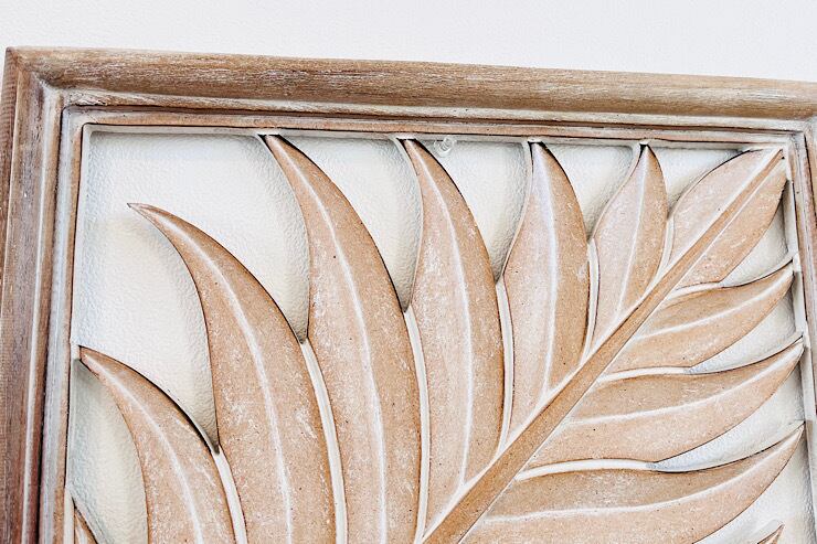 リーフをデザインしたハンギングオブジェです。職人さんがハンドメイドで1つ1つ丁寧に彫り上げたお洒落なレリーフです。