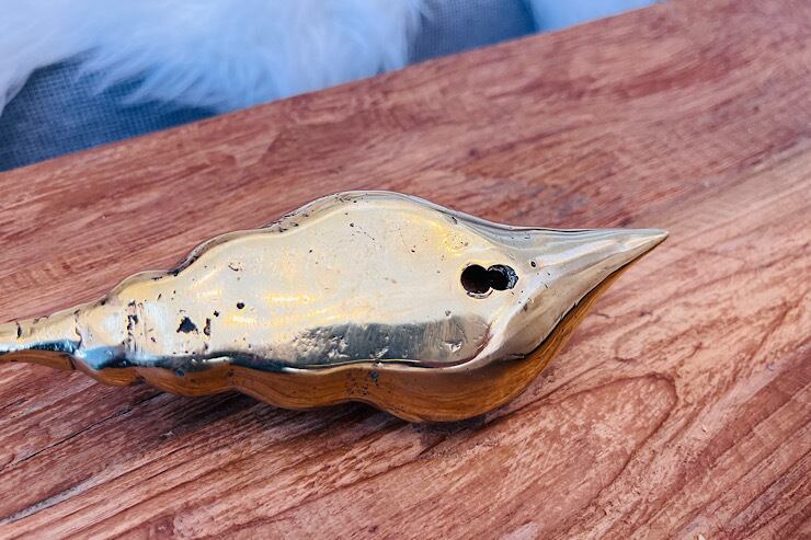 ・真鍮を使用して作られているため、空気に触れることで徐々に黒ずみ、緑青(ろくしょう)と呼ばれる緑色のサビが見られる場合がございますが、磨いて頂くと元に戻ります。