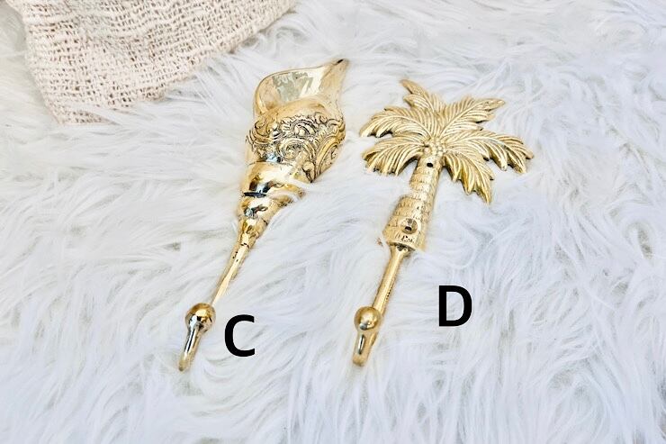 真鍮製のフックです。パームツリーとシェルモチーフのデザインがございます。