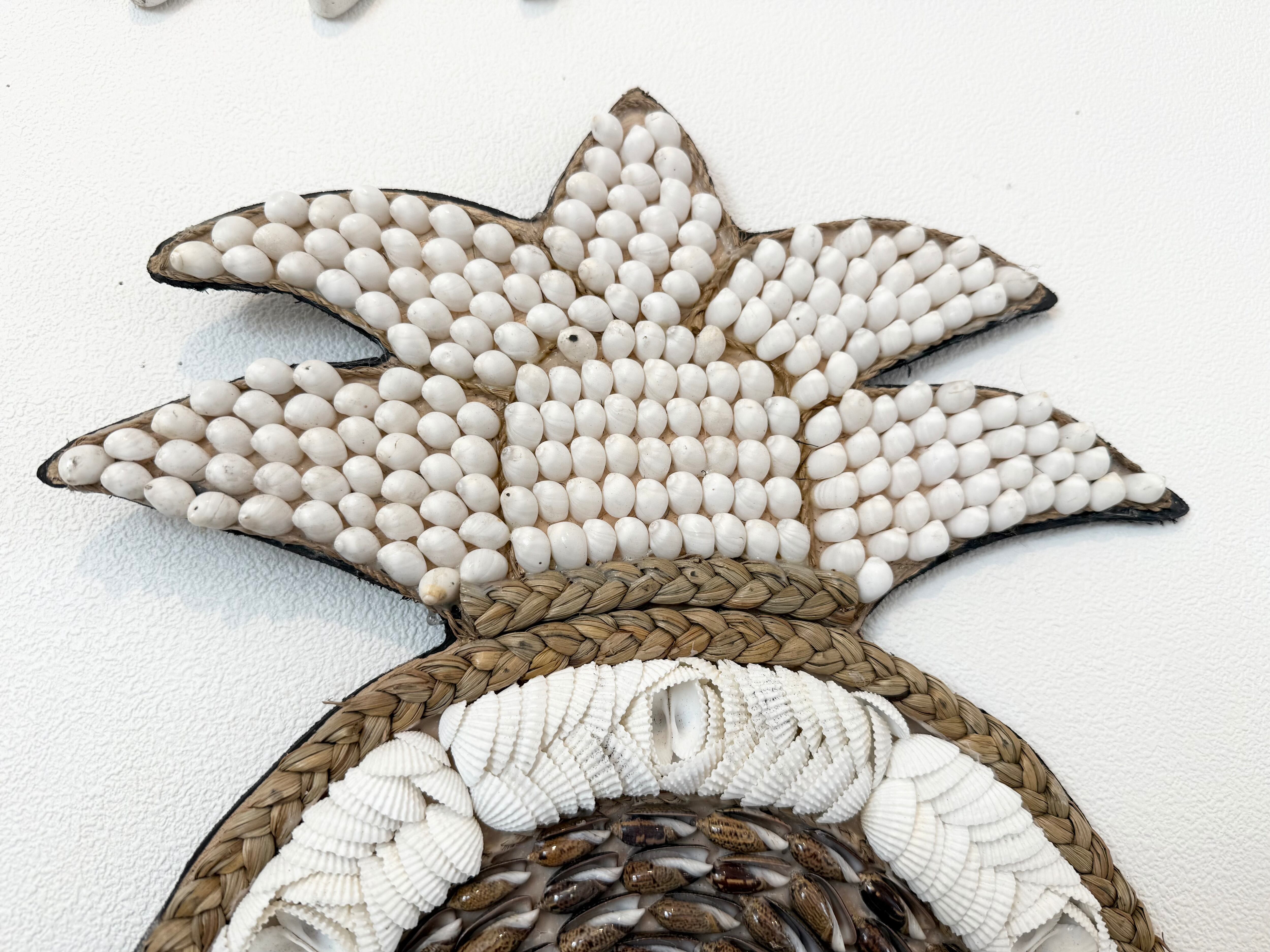 小さな貝を使ってパイナップルの形をモチーフに作られたハンギングオブジェです。