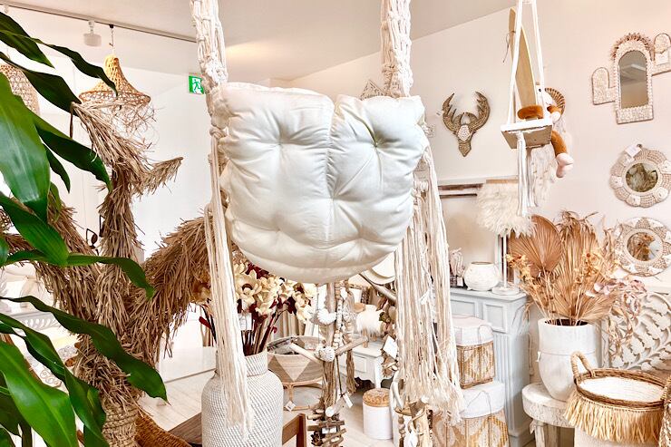 マクラメで作られた赤ちゃん用のハンギングチェアーです。