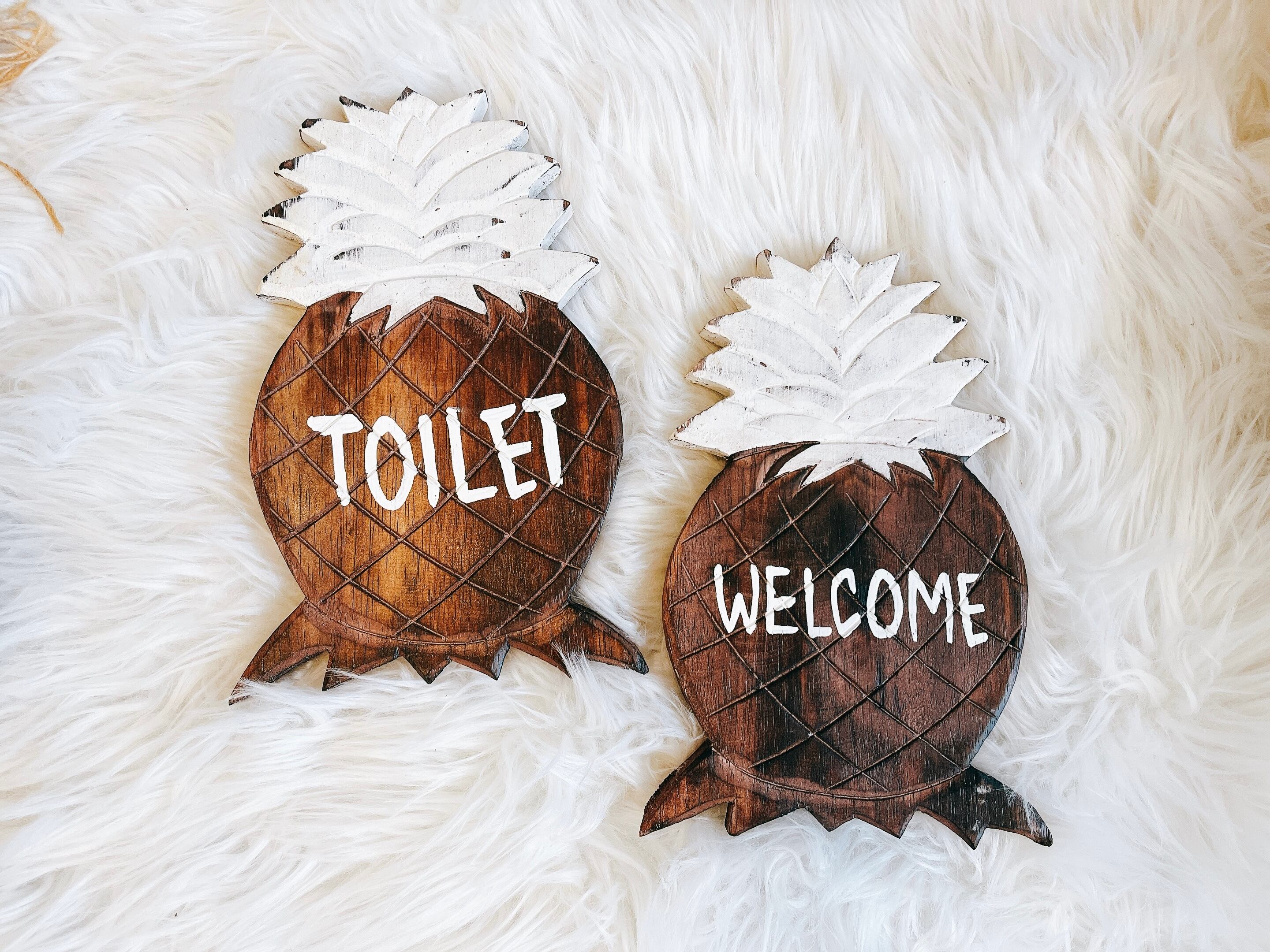パイナップルをモチーフに作られたサインボードです。どこにでも飾りやすいサイズ感です。
