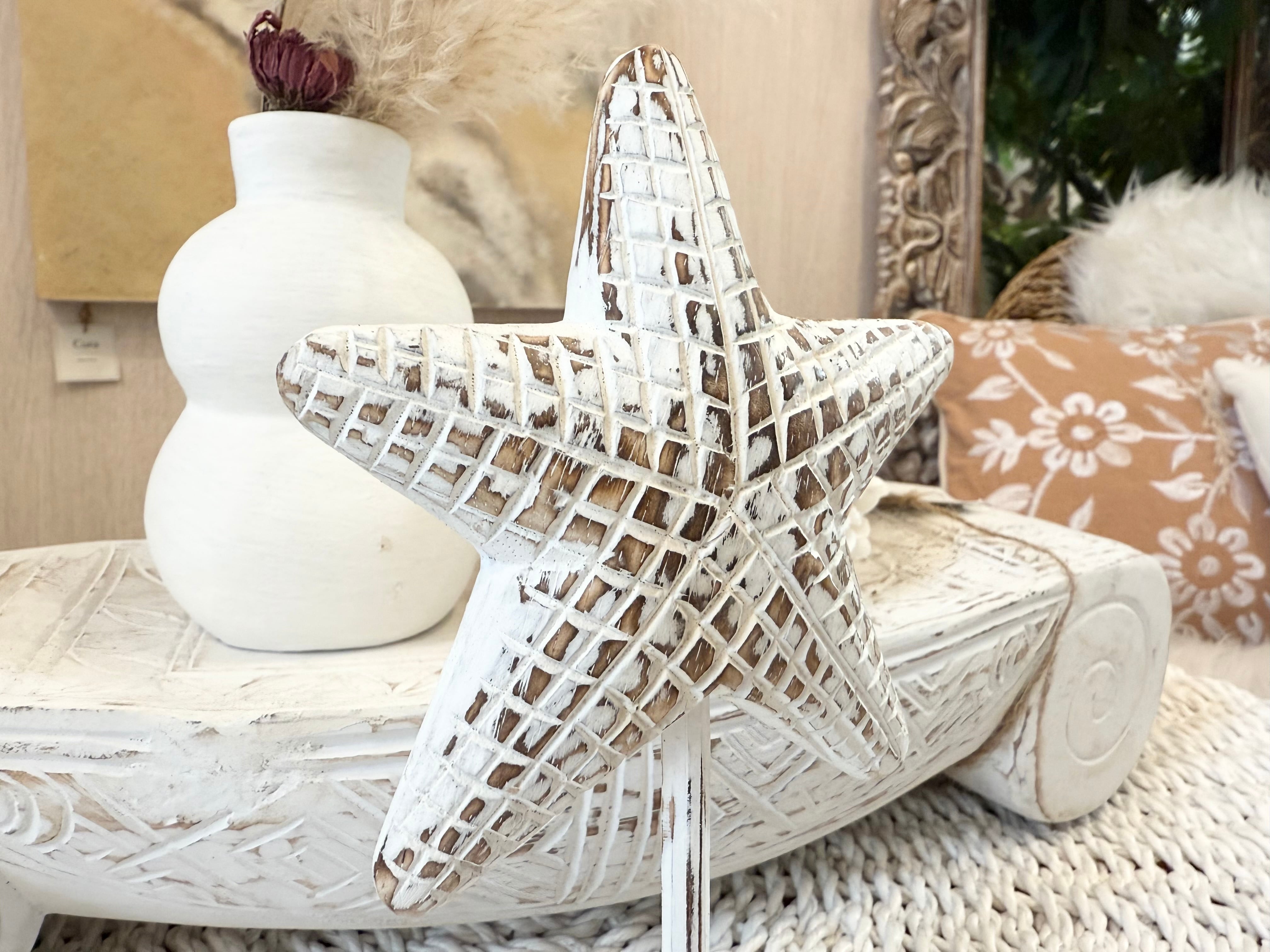 木の温もりを感じる、木製ヒトデオブジェ Lです。